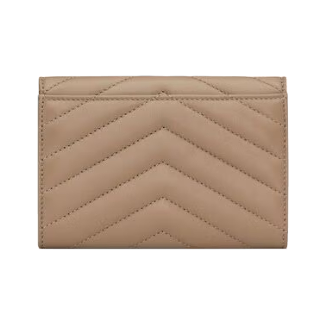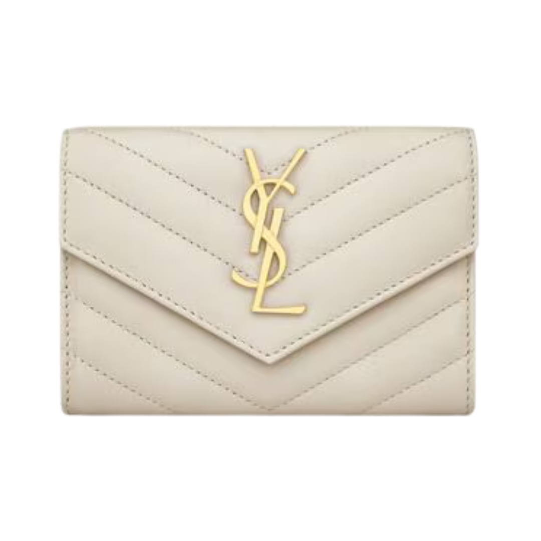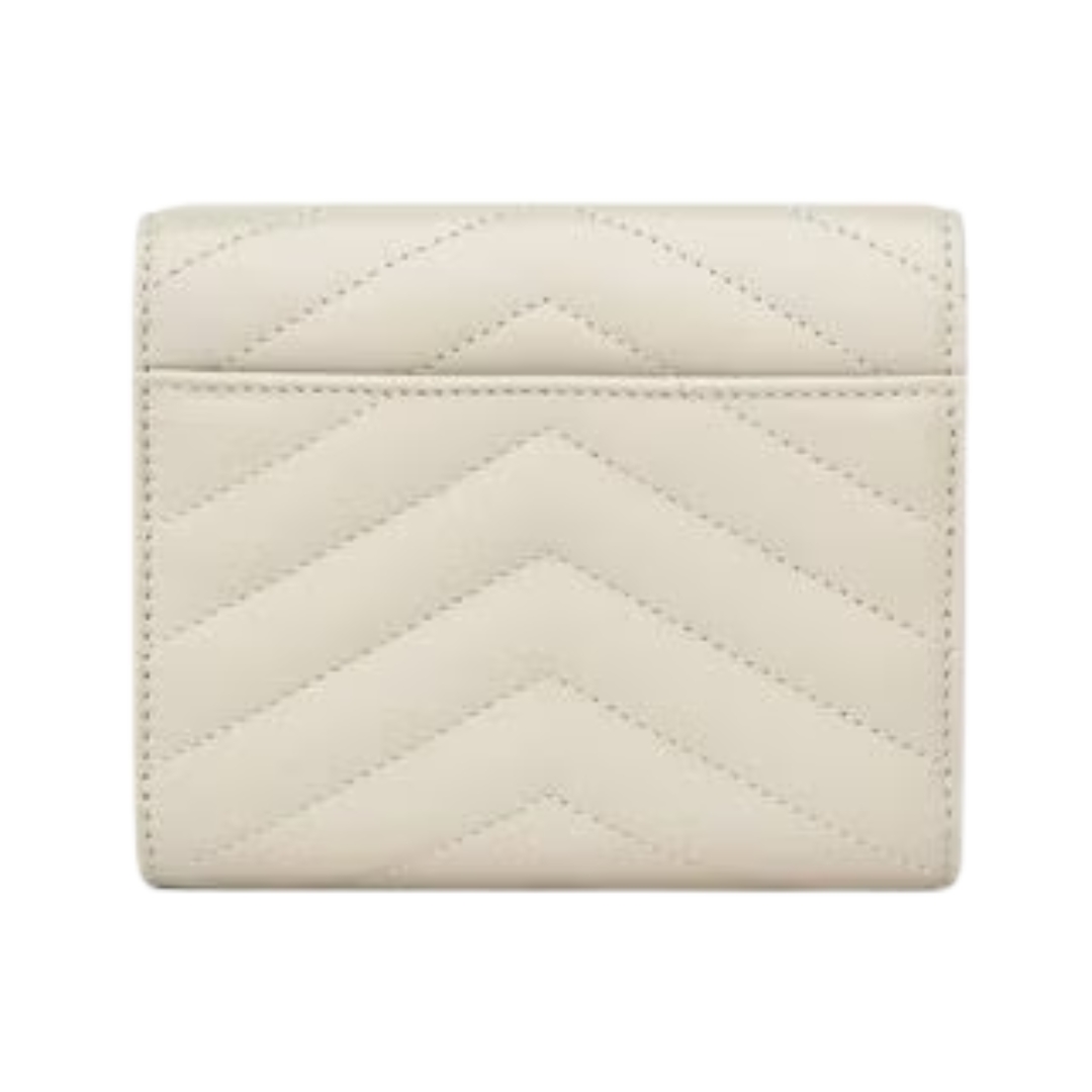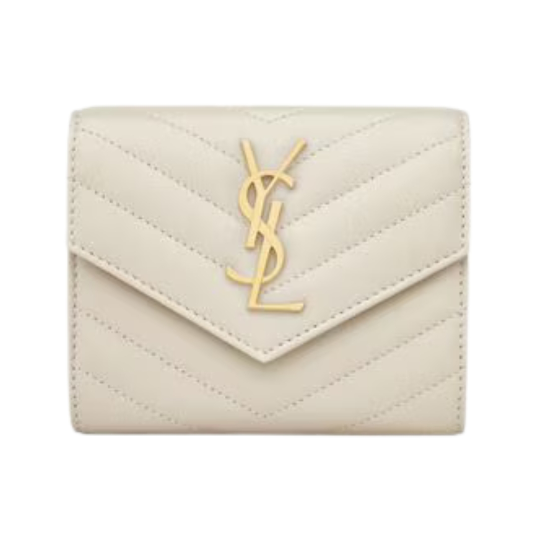 Portafoglio Saint Laurent Cassandre Matelassé Tri-Fold compatto in agnello avorio 12.5 cm