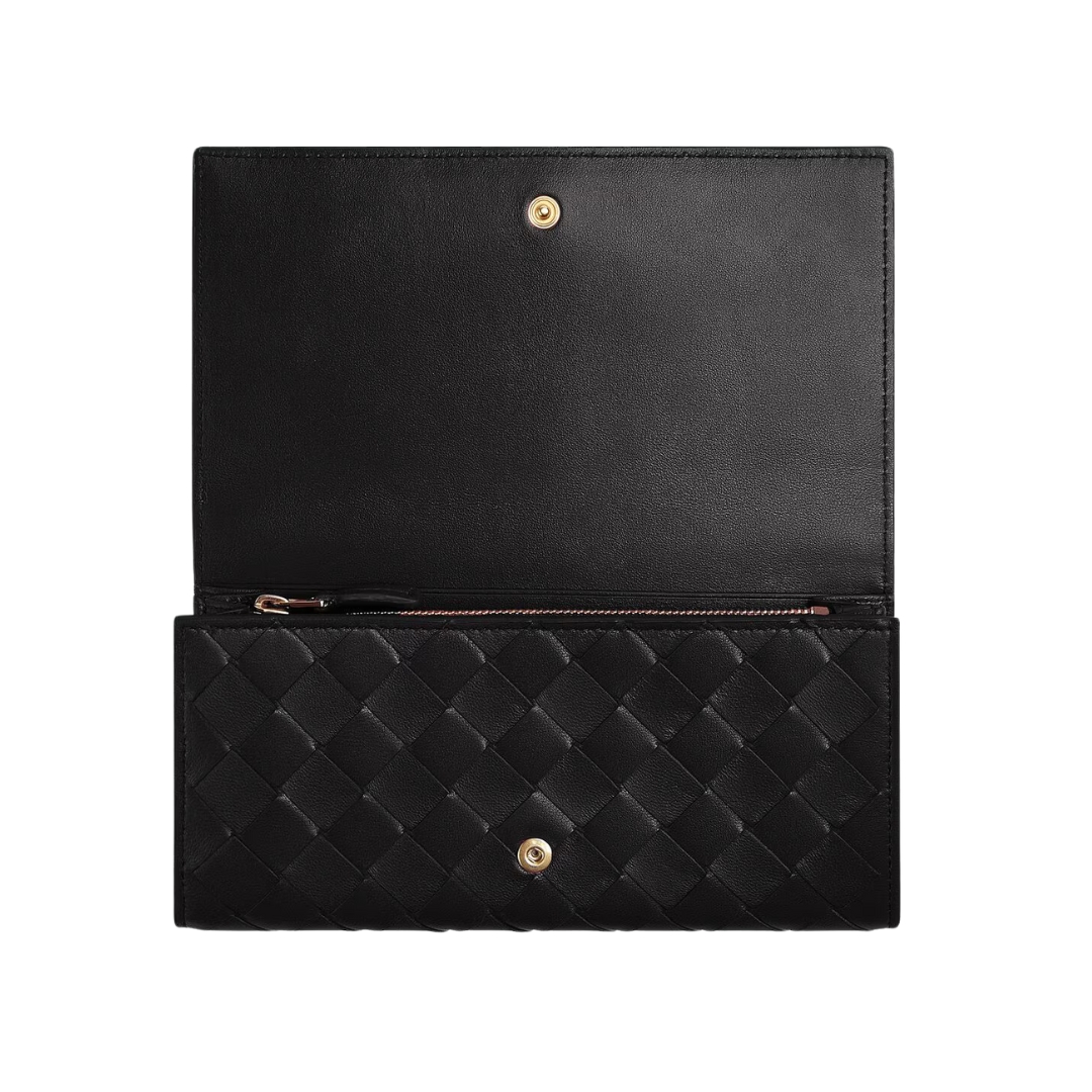 Portafoglio Bottega Veneta medio in pelle nera 10 cm