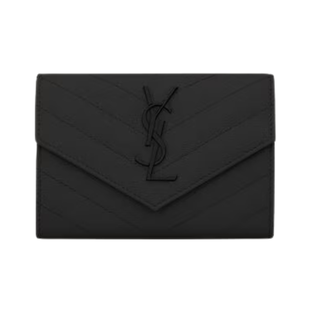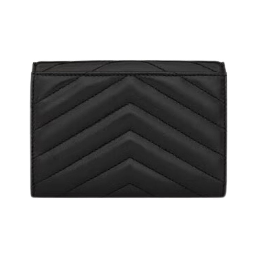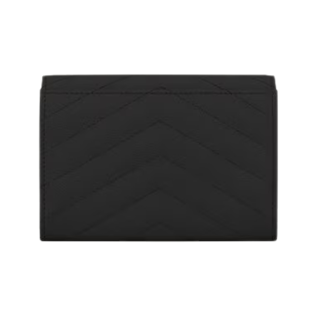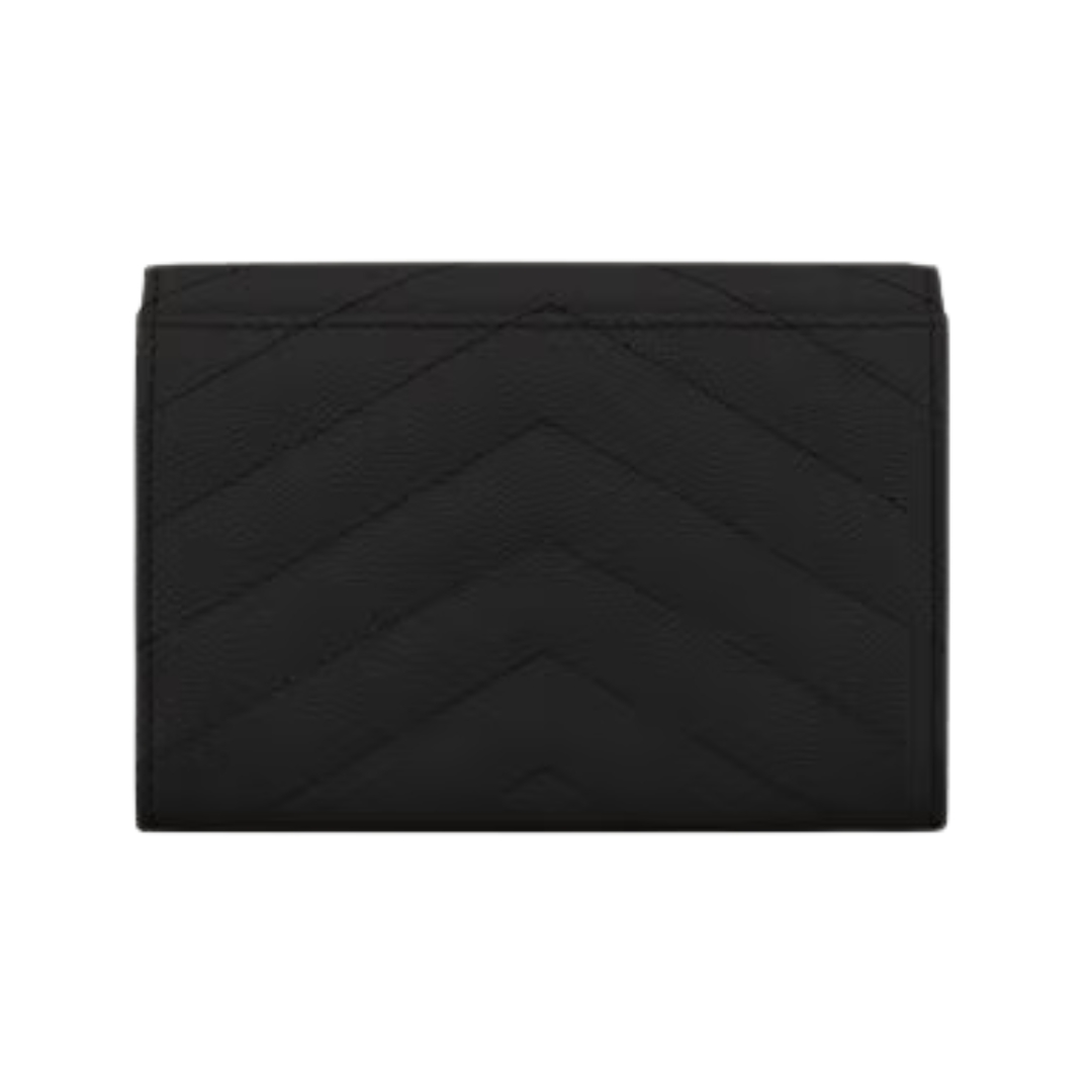Portafoglio Saint Laurent Cassandre Matelassé a busta piccolo in pelle Grain de Poudre nera 13.5 cm