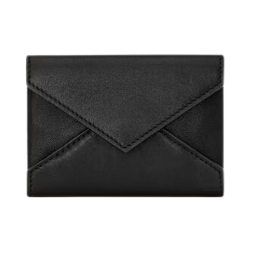 Portafoglio compatto Cassandre in agnello nero 13.5 cm