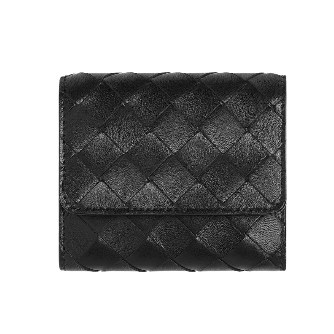 Portafoglio in pelle intrecciata blu notte 11.5 cm