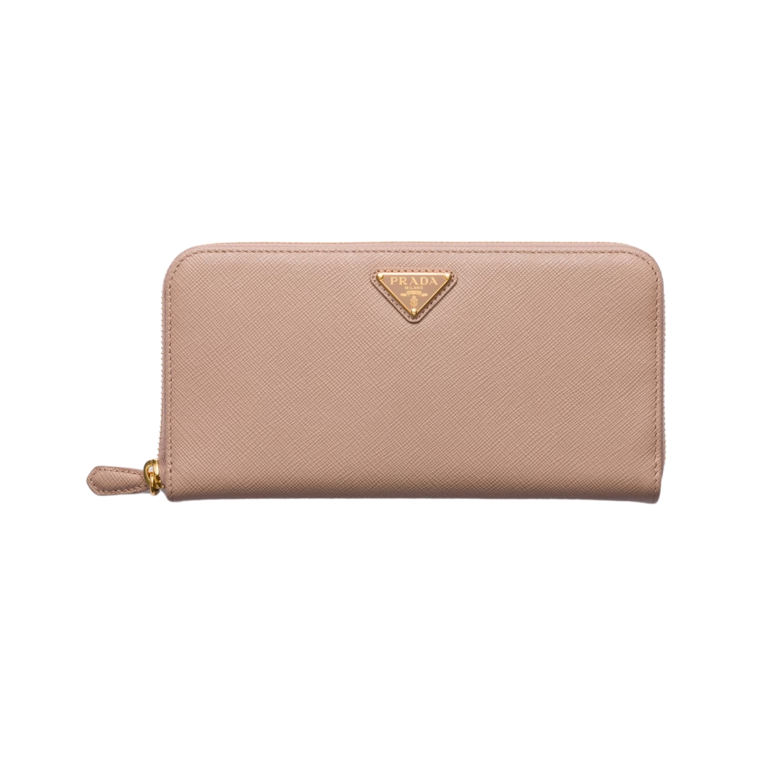 Portafoglio grande Prada in pelle Saffiano rosa cipria 9,5 cm