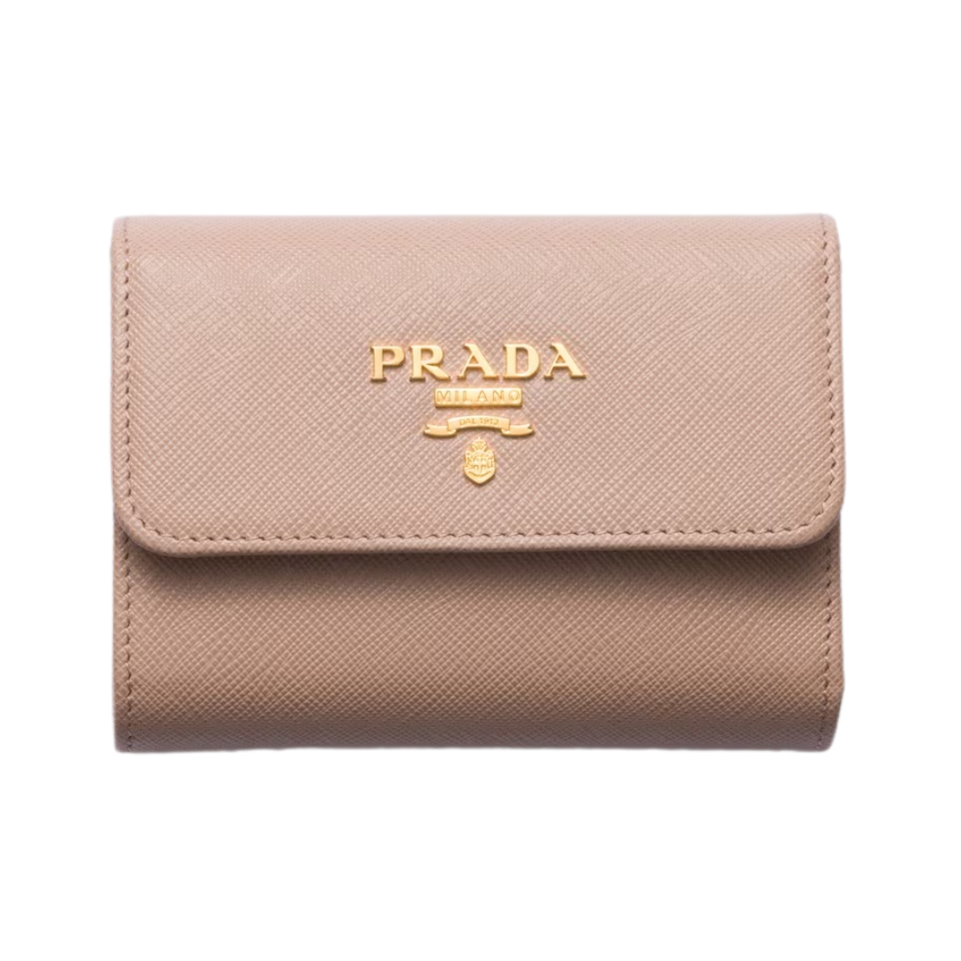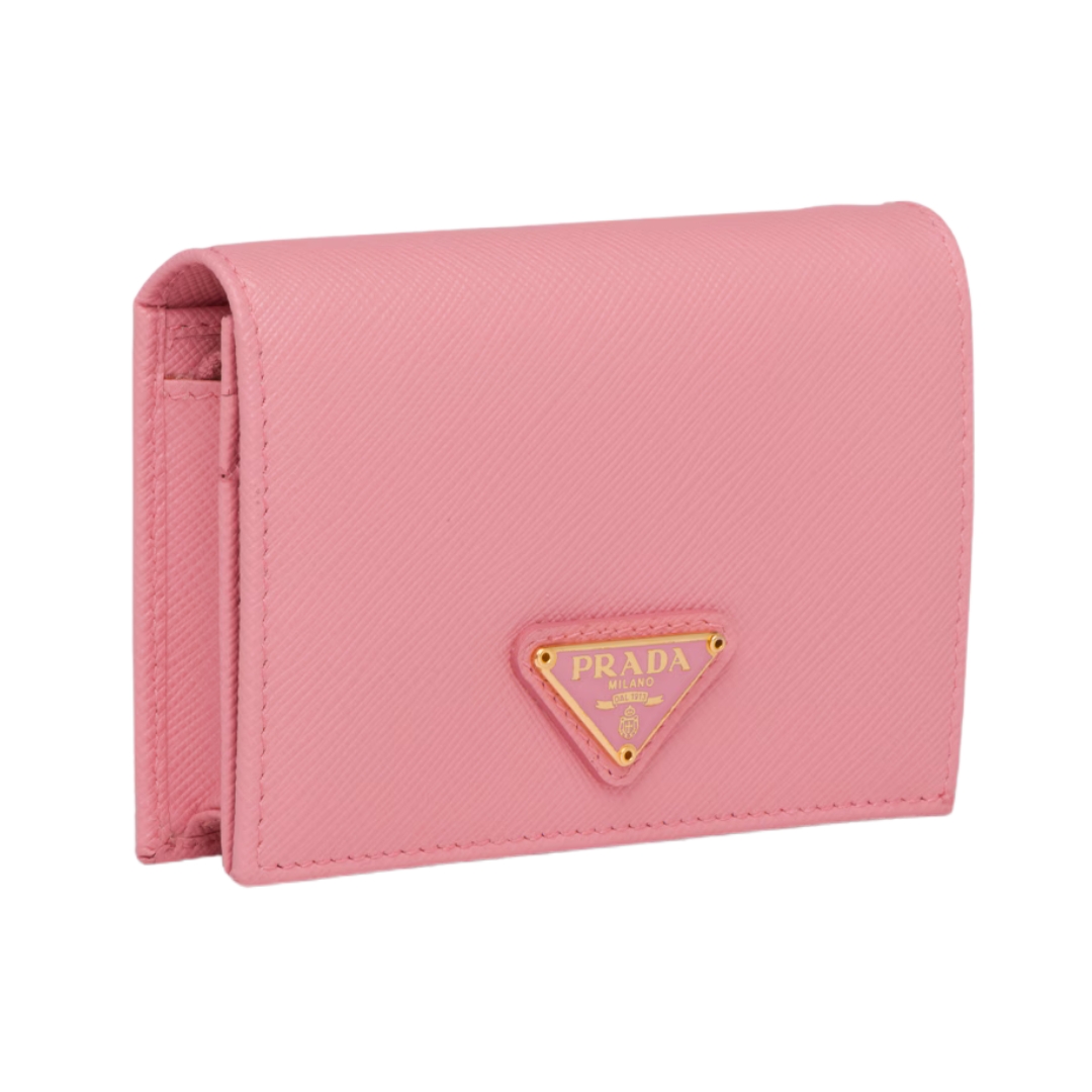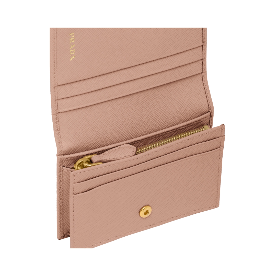 Portafoglio compatto Prada in pelle Saffiano rosa cipria 9.5 cm