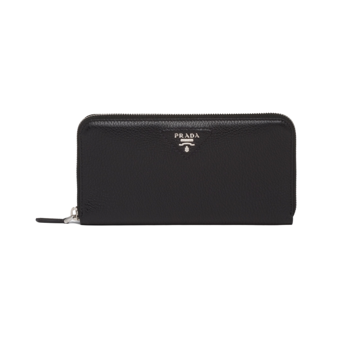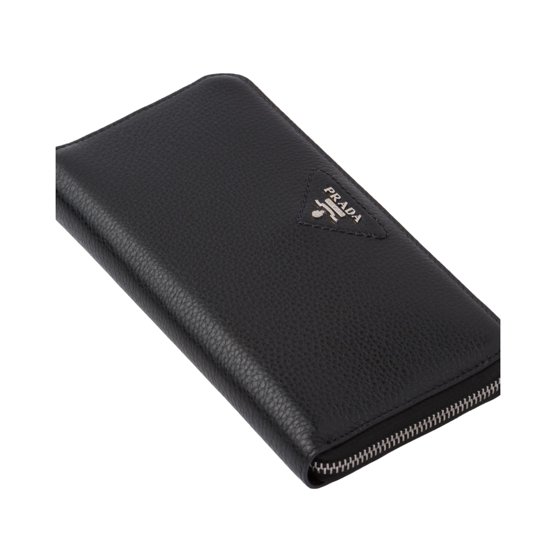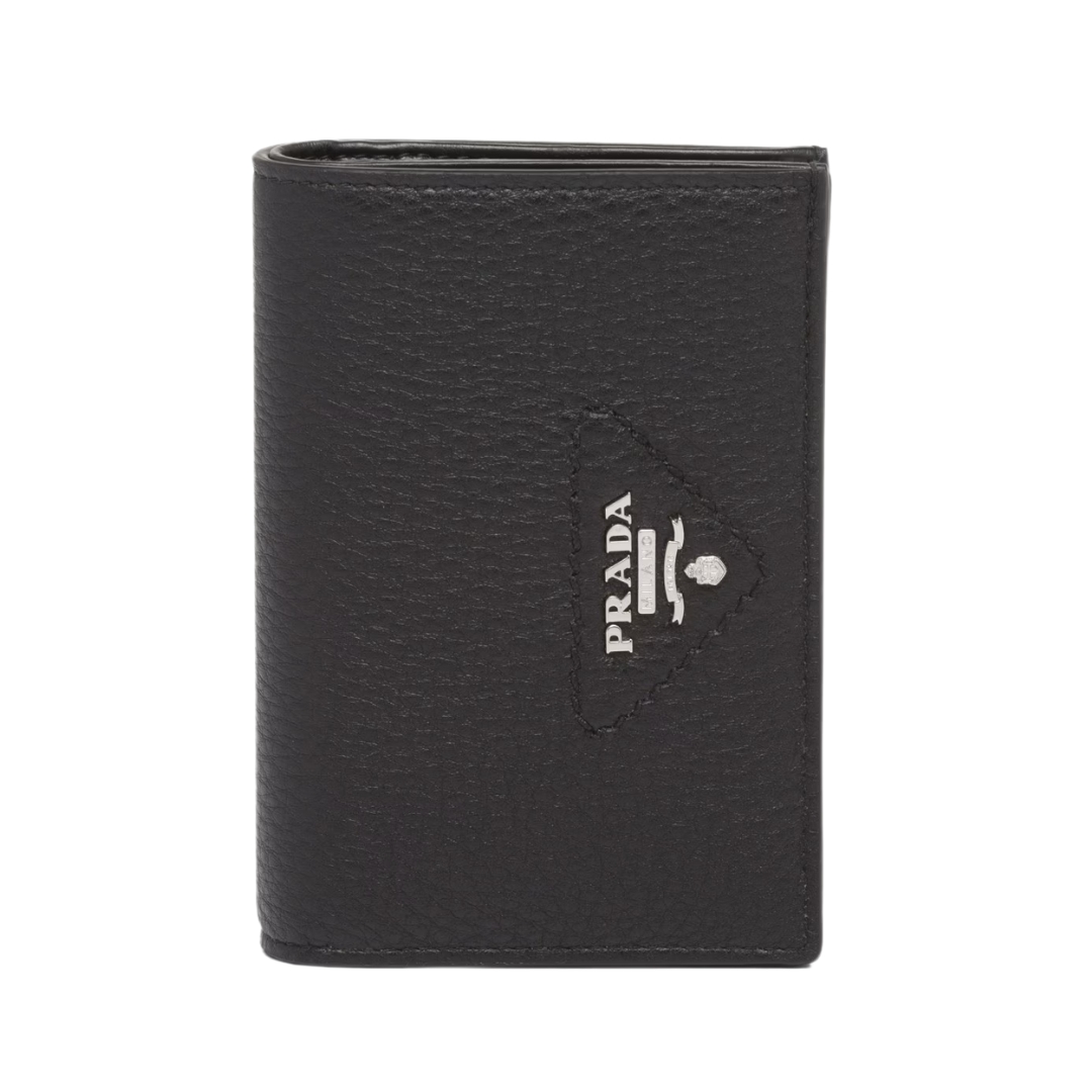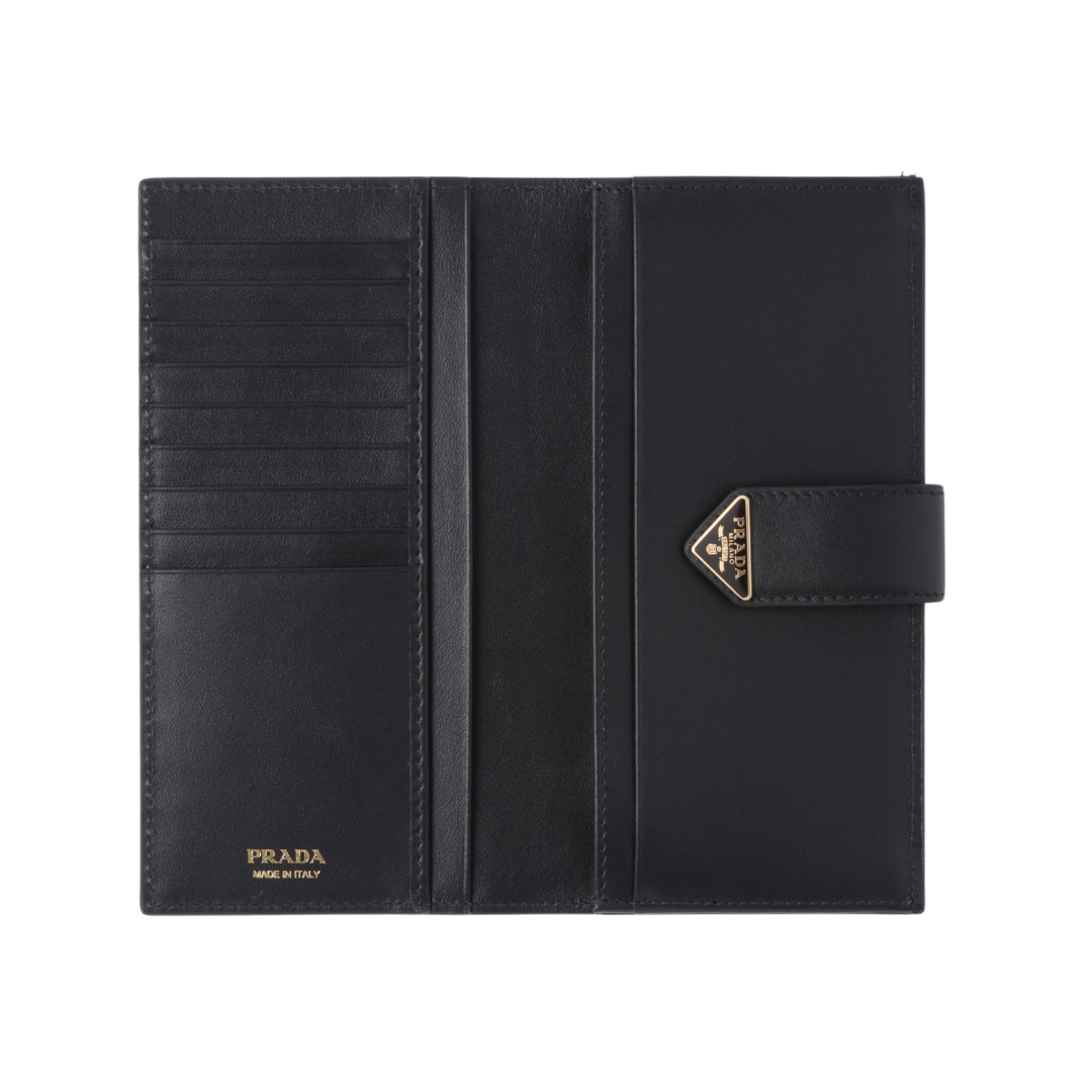 Portafoglio compatto Prada in pelle nera 10.3 cm