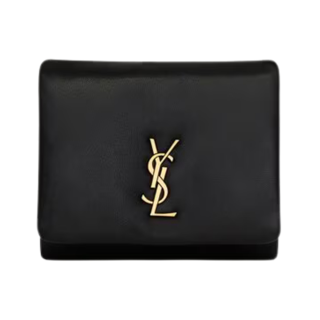 Portafoglio compatto Saint Laurent Calypso in pelle di agnello nera 12 cm