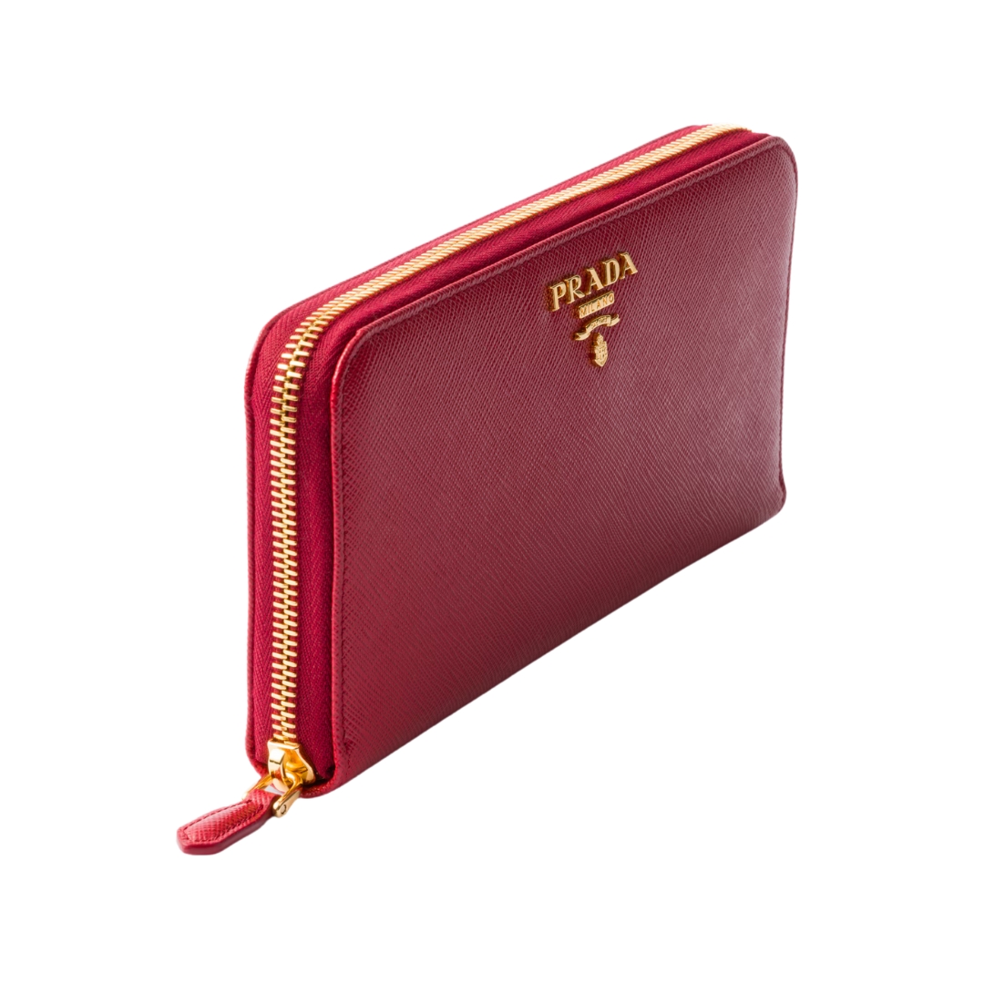 Portafoglio compatto Prada in pelle Saffiano rosso fuoco 10.3 cm