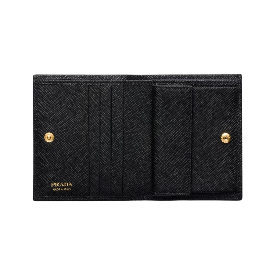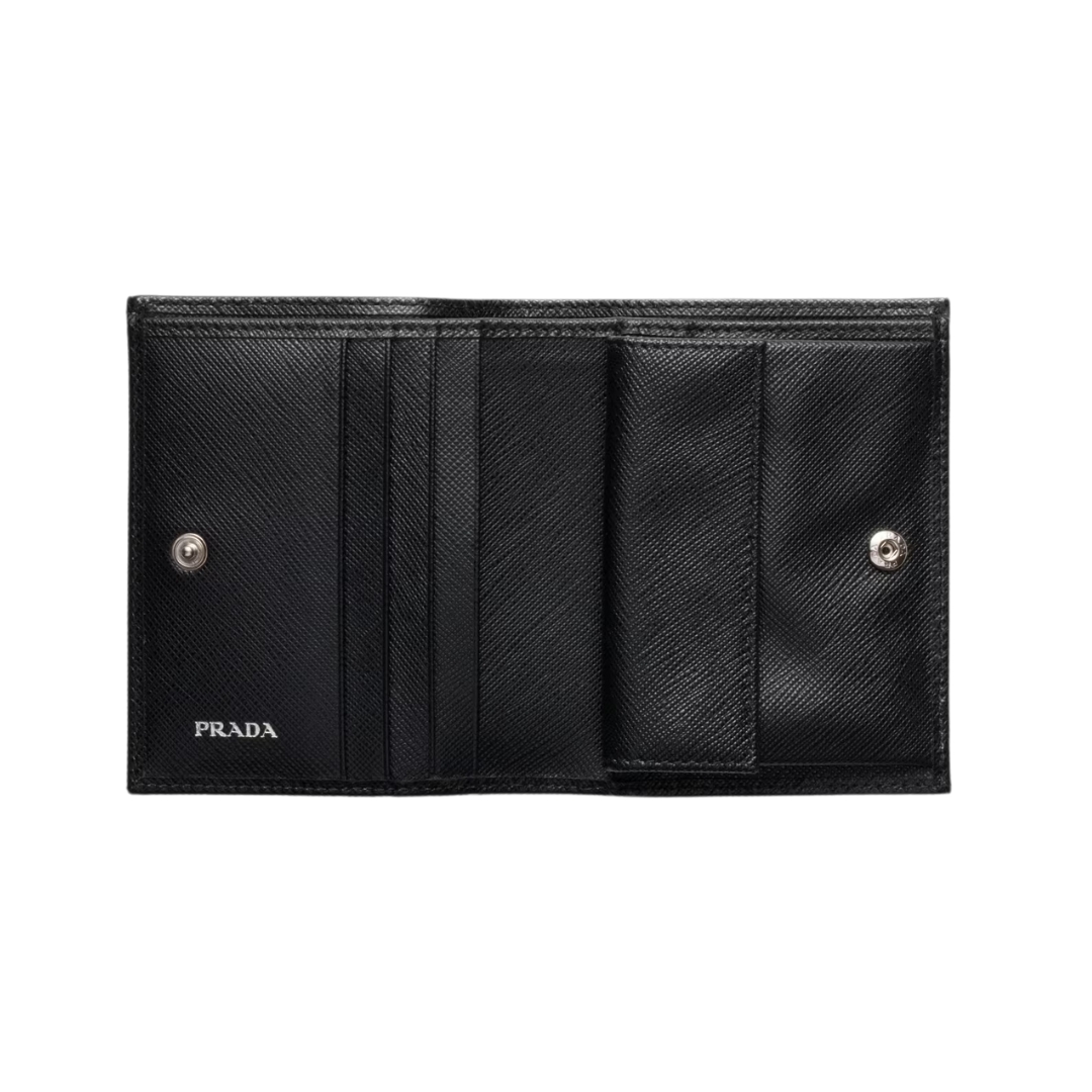 Portafoglio Prada compatto in pelle Saffiano nero 11,2 cm