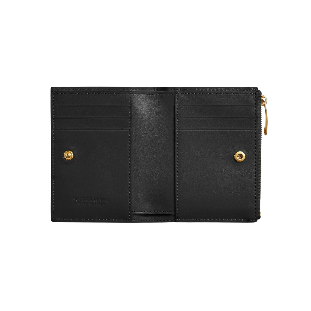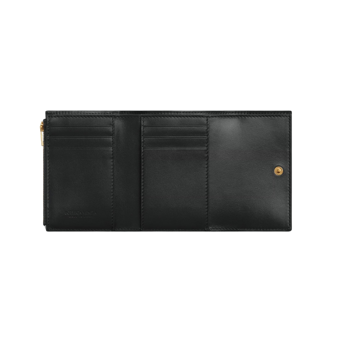 Portafoglio compatto Bottega Veneta in nappa intrecciata nera 9 cm