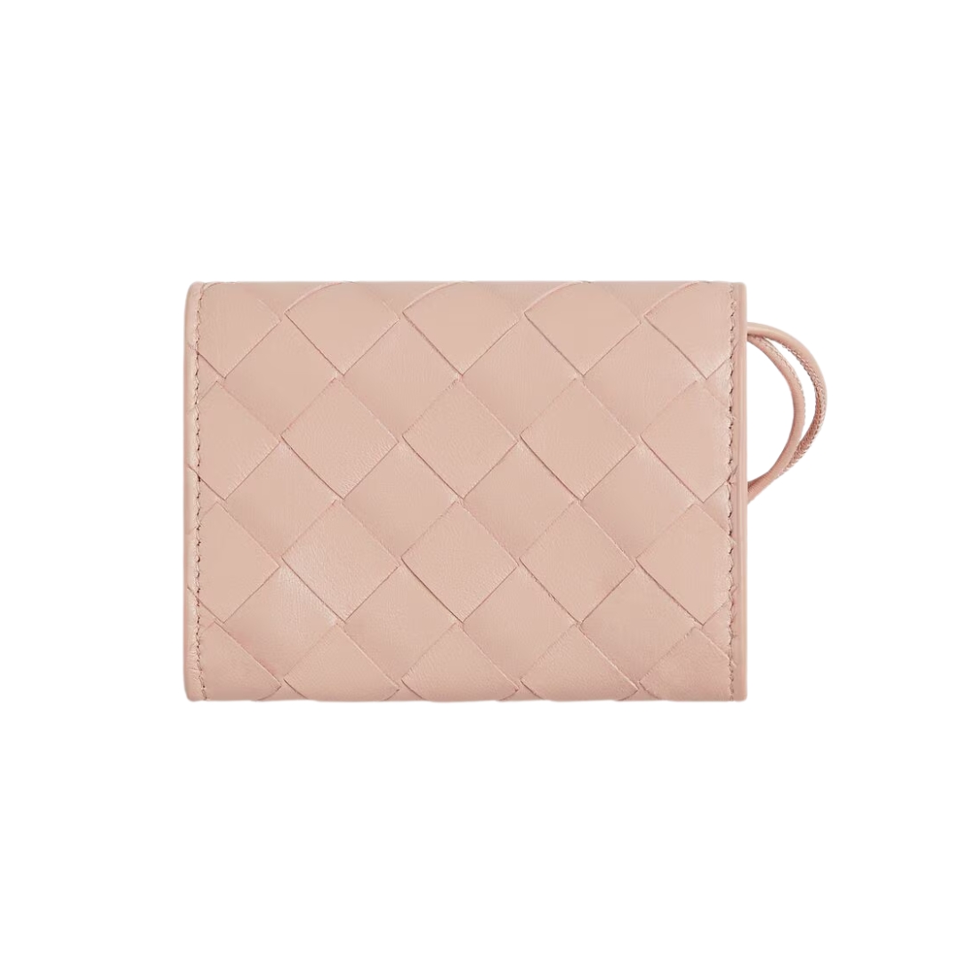 Portafoglio intrecciato in pelle Nappa Bottega Veneta rosa cipria 8.5 cm