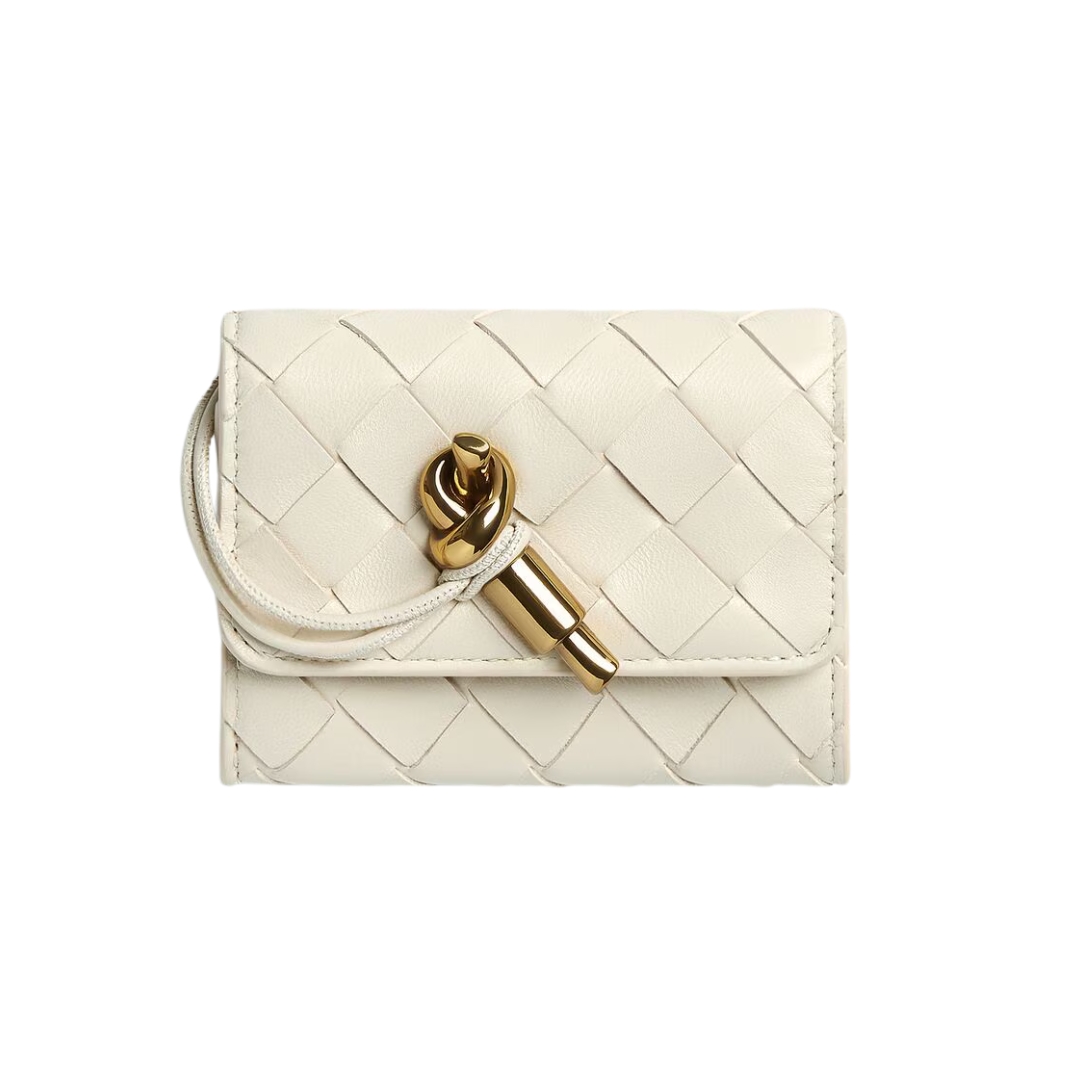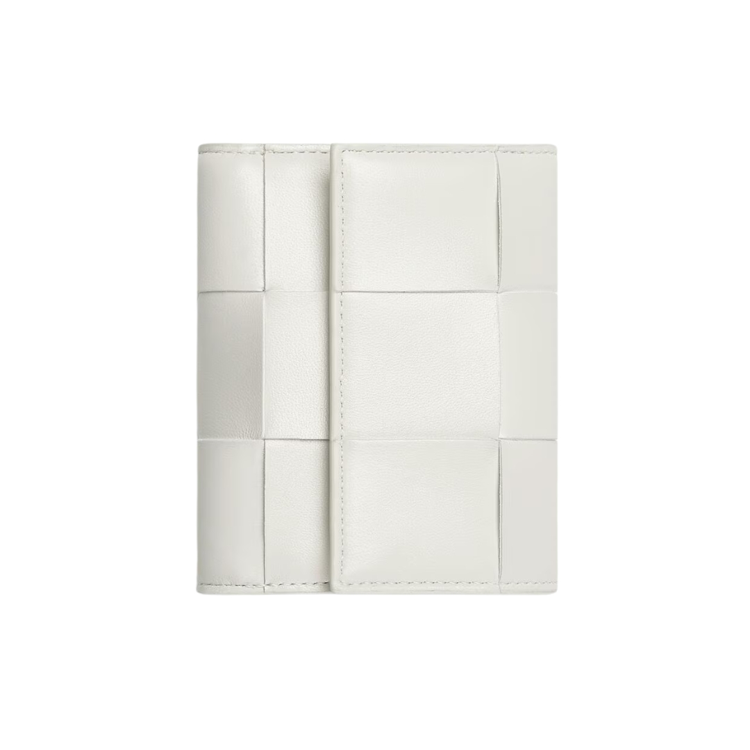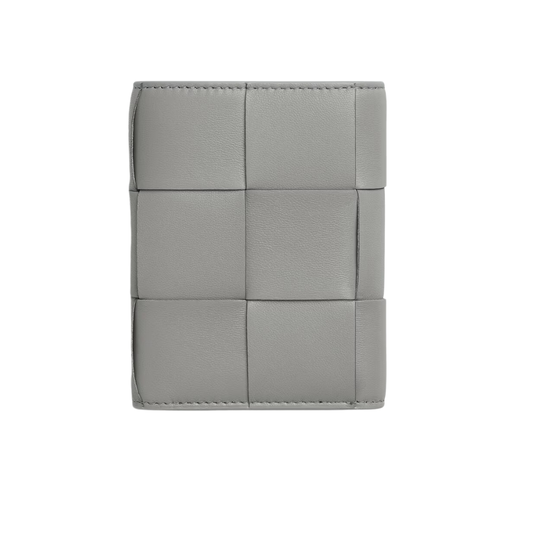Portafoglio compatto Bottega Veneta in pelle intrecciata gesso 9 cm