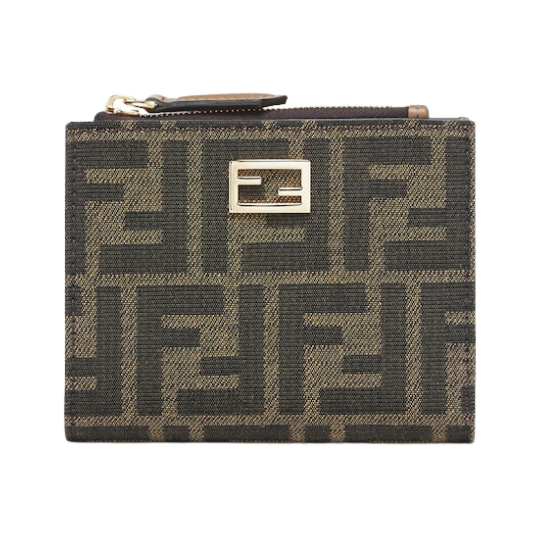 Portafoglio Fendi in jacquard marrone con motivo FF 9.5 cm
