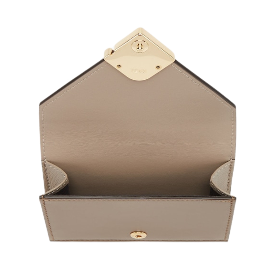 Portafoglio Fendi in pelle liscia grigia e tortora con logo FF 8 cm