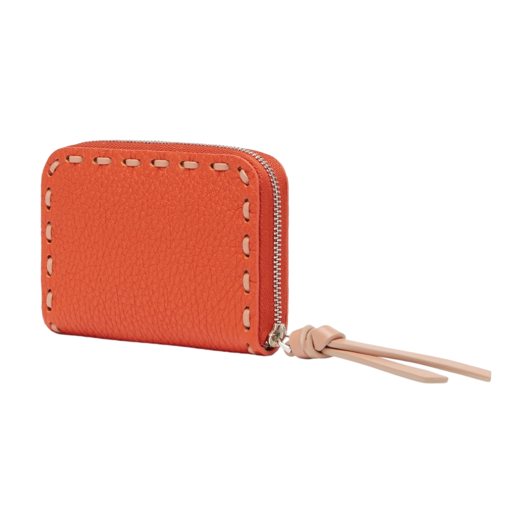 Dimensioni:● Larghezza: 8 cm● Altezza: 6,5 cm● Profondità: 1,5 cm Dettagli:● Materiale: pelle martellata● Colore: arancione● Chiusura: zip● Logo: Fendi