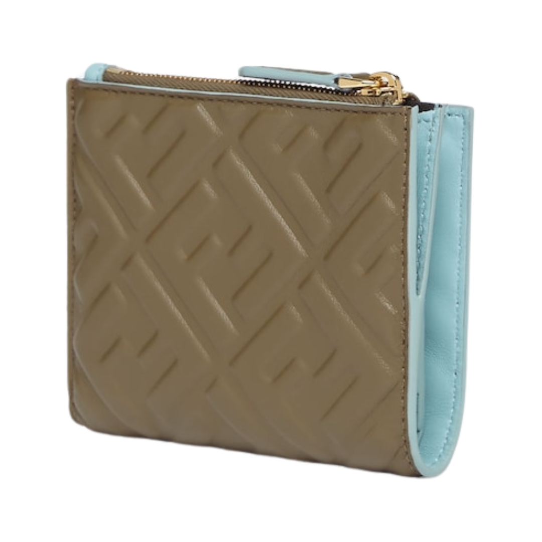 Portafoglio Fendi in nappa verde con motivo FF 9.5 cm