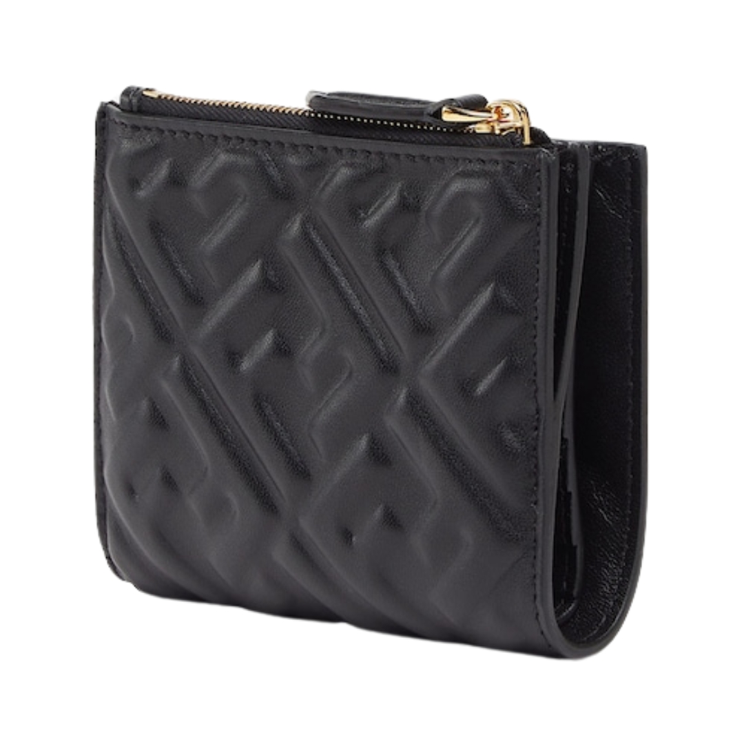 Portafoglio bi-fold Fendi compatto in pelle nera 9.5 cm