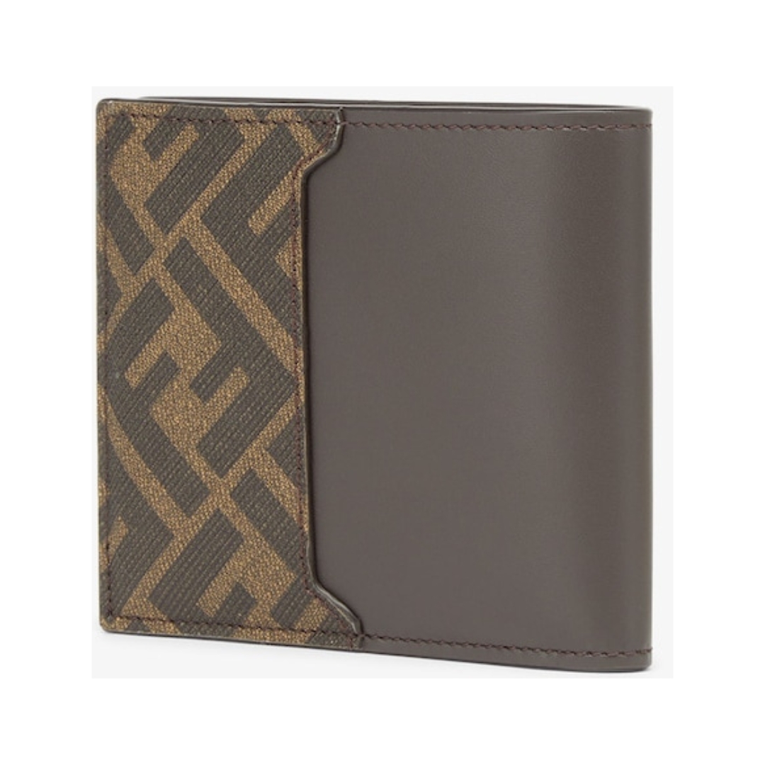 Portafoglio Fendi in nappa grigio-marrone con motivo FF 9.5 cm