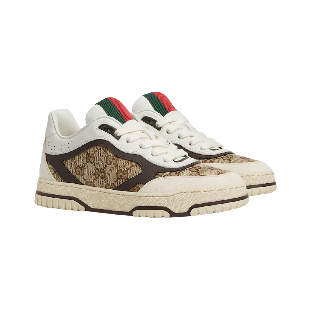 Sneakers Gucci Re-Web in canvas GG e pelle marrone