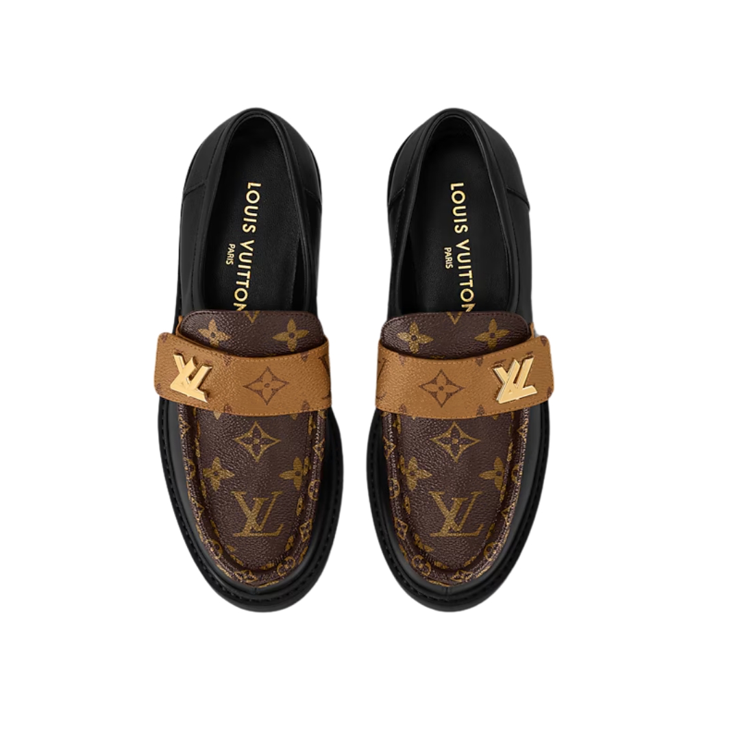 Dettagli:● Materiale: Pelle di vitello e tela Monogram● Colore: Nero e marrone● Chiusura: Slip-on● Logo: Fibbia LV dorata● Suola: Pelle