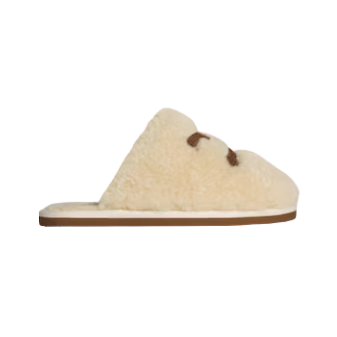 Dettagli:● Materiale: Shearling naturale● Colore: Beige sabbia● Chiusura: Modello slip-on● Logo: Inciso sulla soletta interna● Suola: In gomma sagomata● Interno: