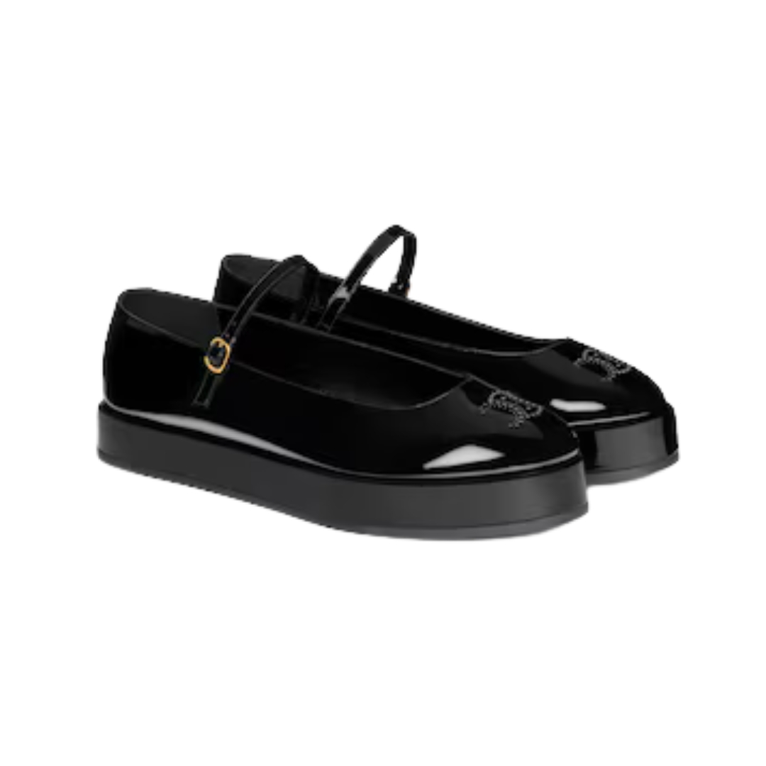 Dettagli:● Materiale: Pelle verniciata di vitello● Colore: Nero lucido● Chiusura: Slip-on con cinturino decorativo● Logo: Stampato sulla soletta interna● Suola: