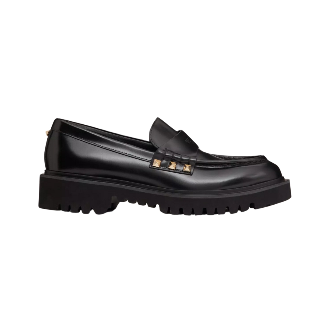 Mocassini Valentino Buffalo in pelle nera con suola alta