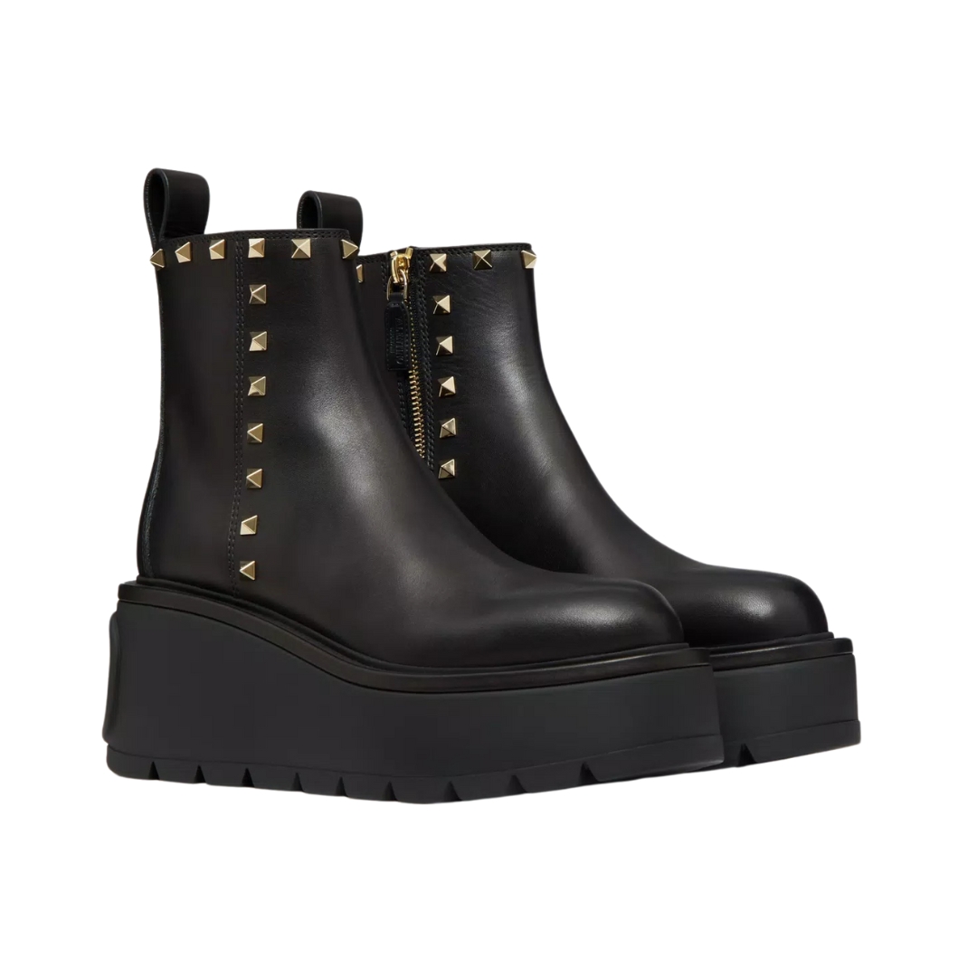 Stivaletti Valentino in pelle di vitello nera con borchie 8,5 cm