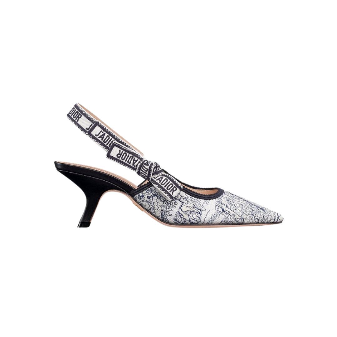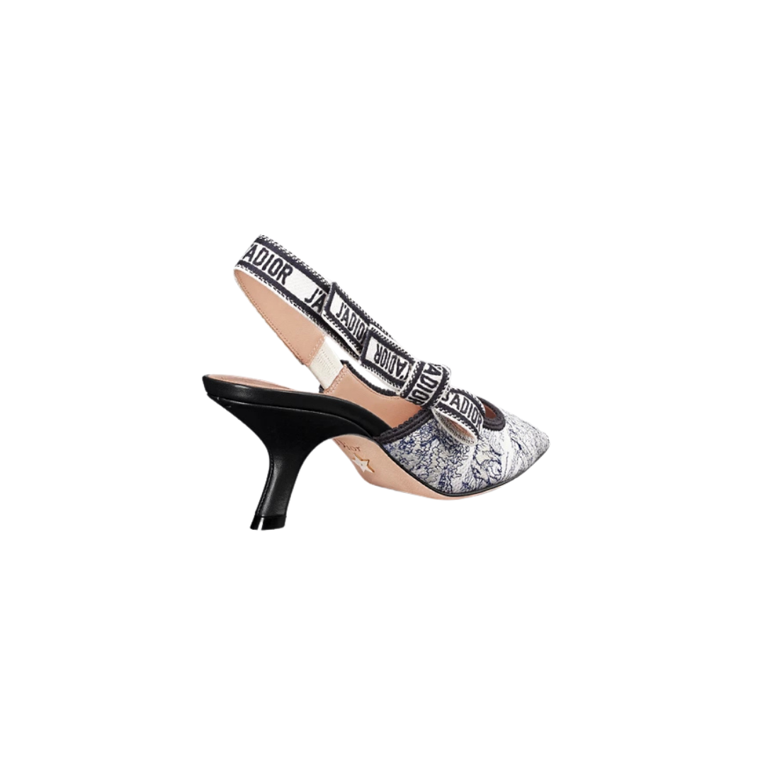 Scarpa Dior Dway Mule in cotone blu navy ricamato con motivo Toile de Jouy Scotland