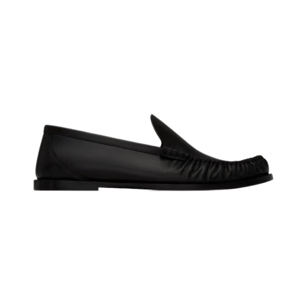 Mocassini Saint Laurent in pelle liscia nera con effetto arricciato