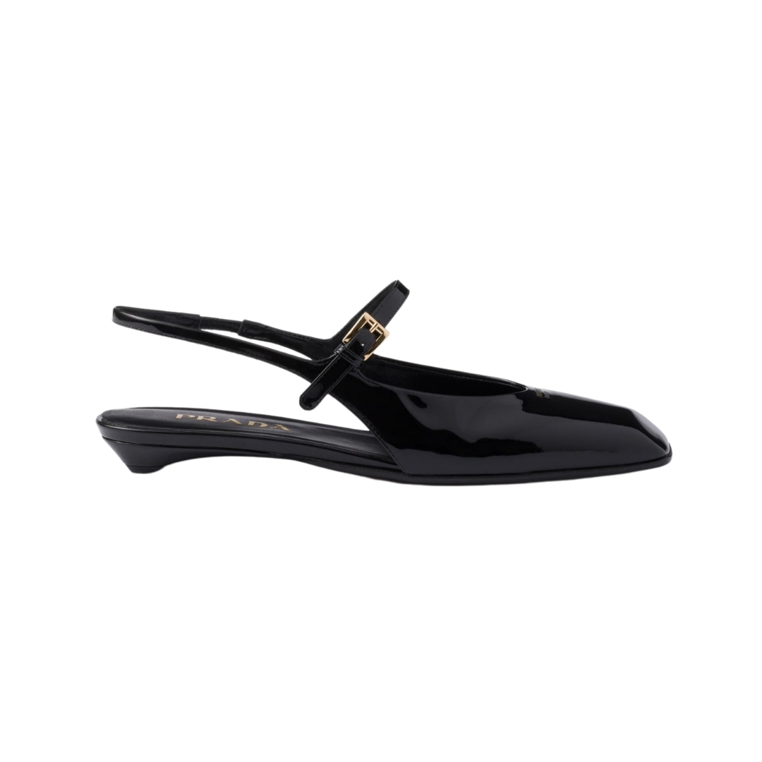 Ballerine Prada slingback in vernice nera con tacco 1,5 cm