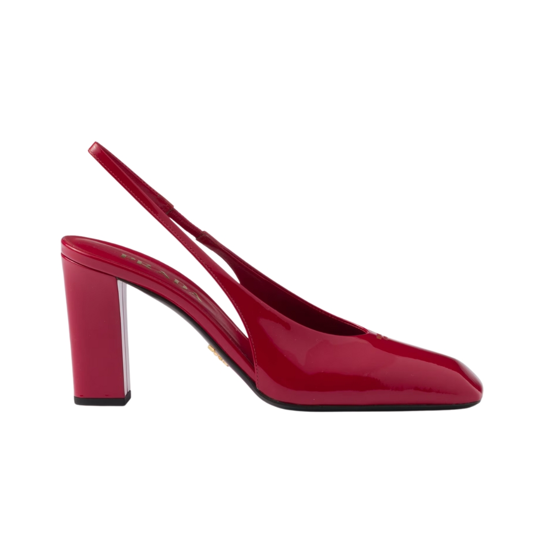 Décolleté slingback Prada in vernice rossa con tacco 8.5 cm