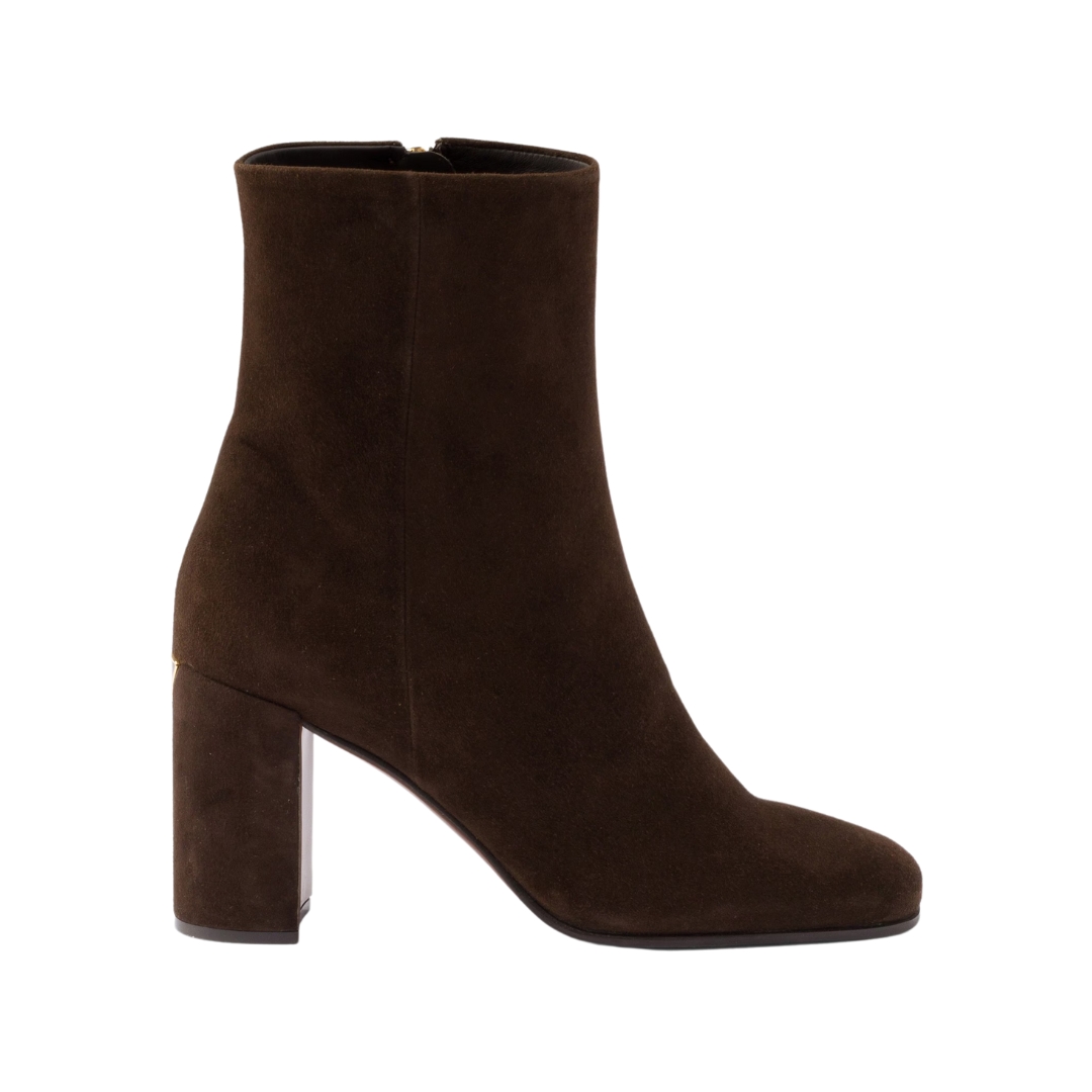 Stivaletti Prada in camoscio marrone scuro con tacco 8.5 cm