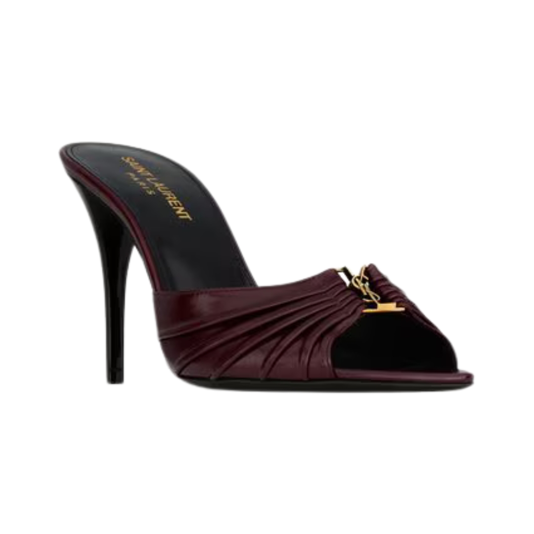 Mules Saint Laurent Babylone in pelle liscia bordeaux 9 cm