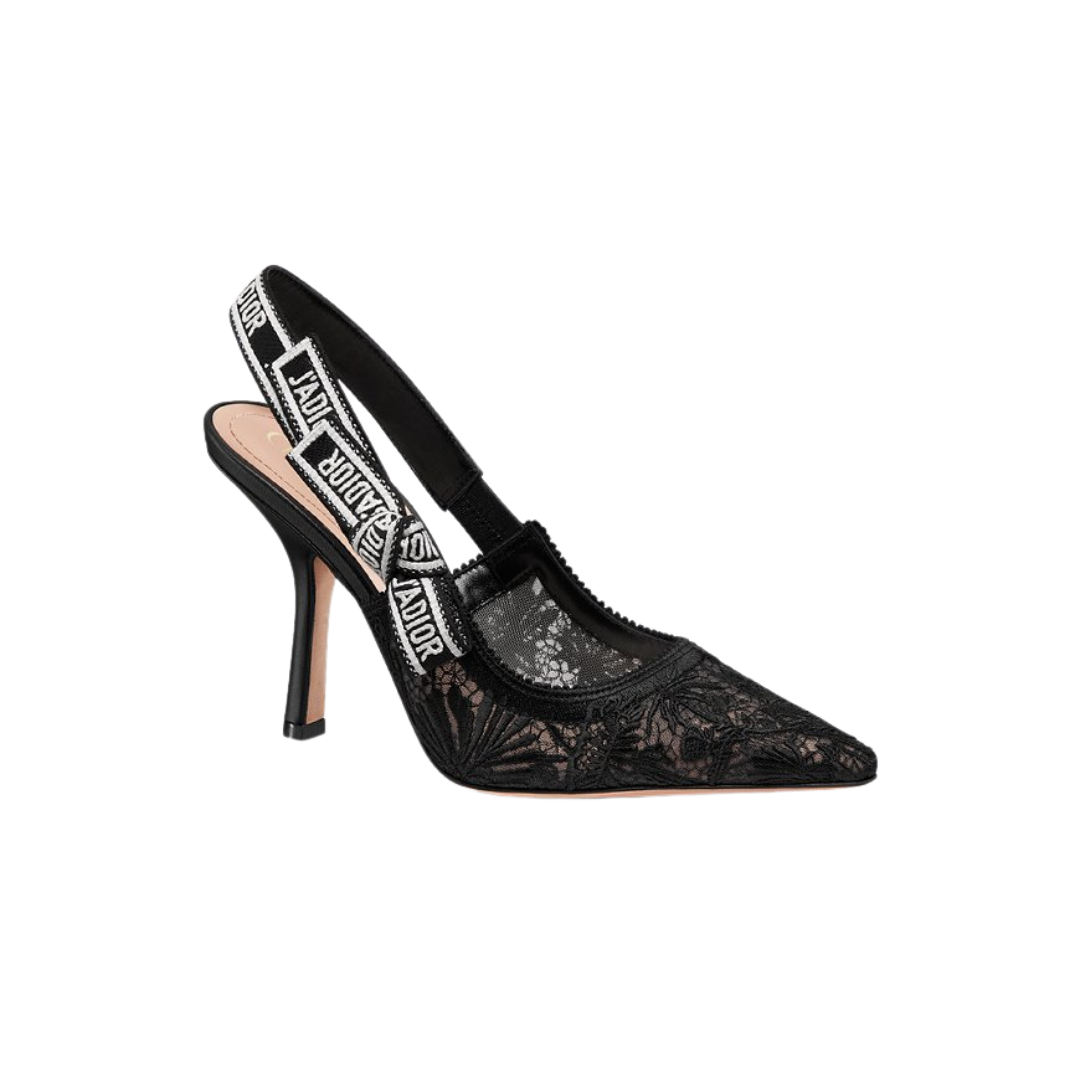 Dimensioni:● Tacco: 10 cm Dettagli:● Materiale: Mesh trasparente ricamata● Colore: Nero● Chiusura: Slip-on● Logo: Nessuno esterno visibile● Suola: Cuoio● Interno: