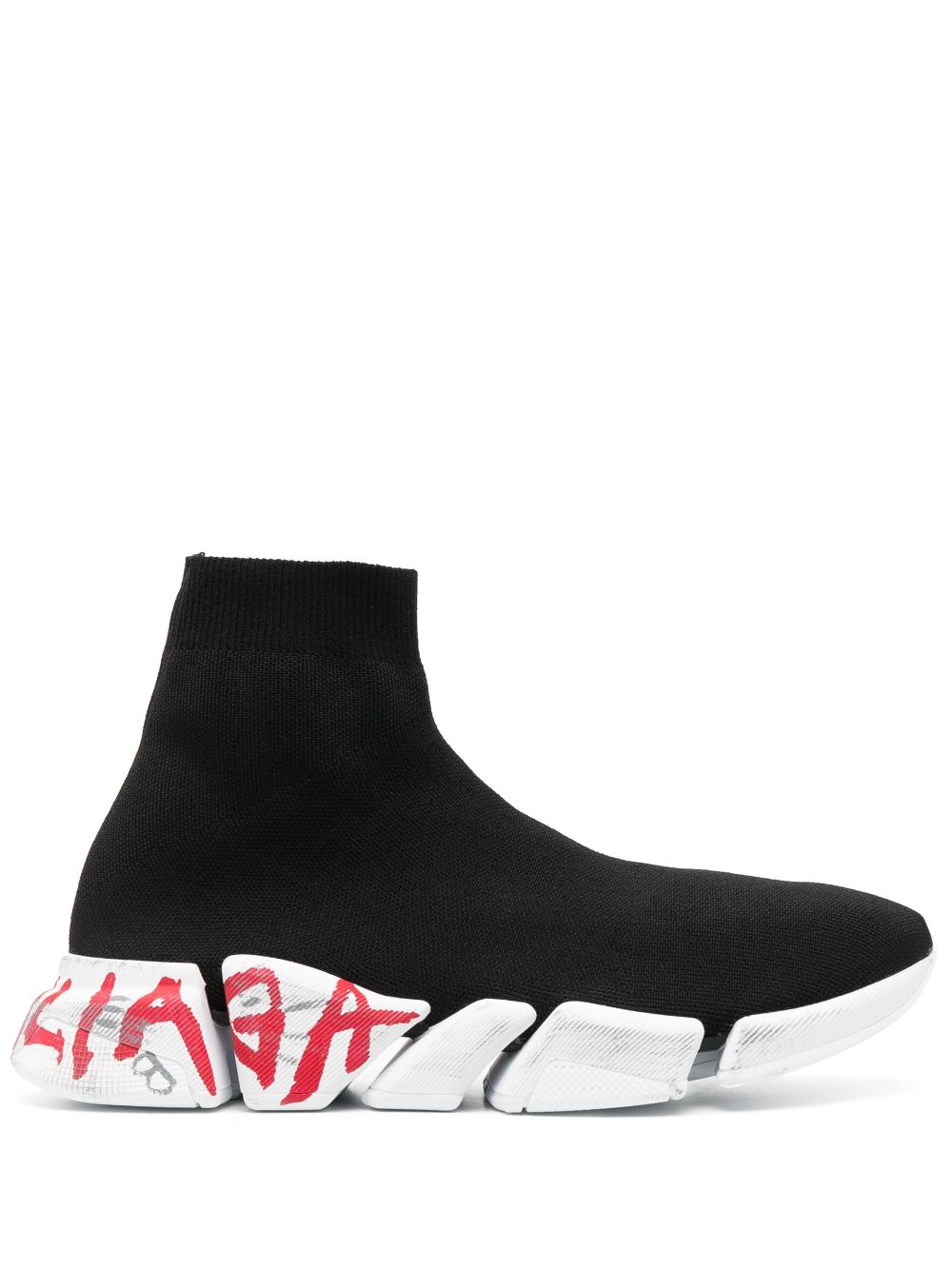 Sneakers Balenciaga Speed 2.0 in maglia nera con dettaglio graffiti