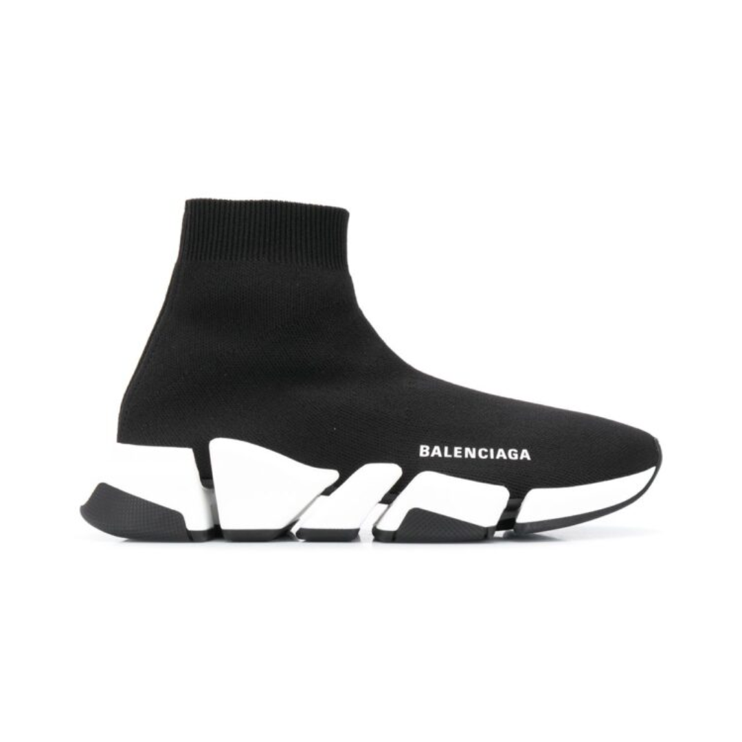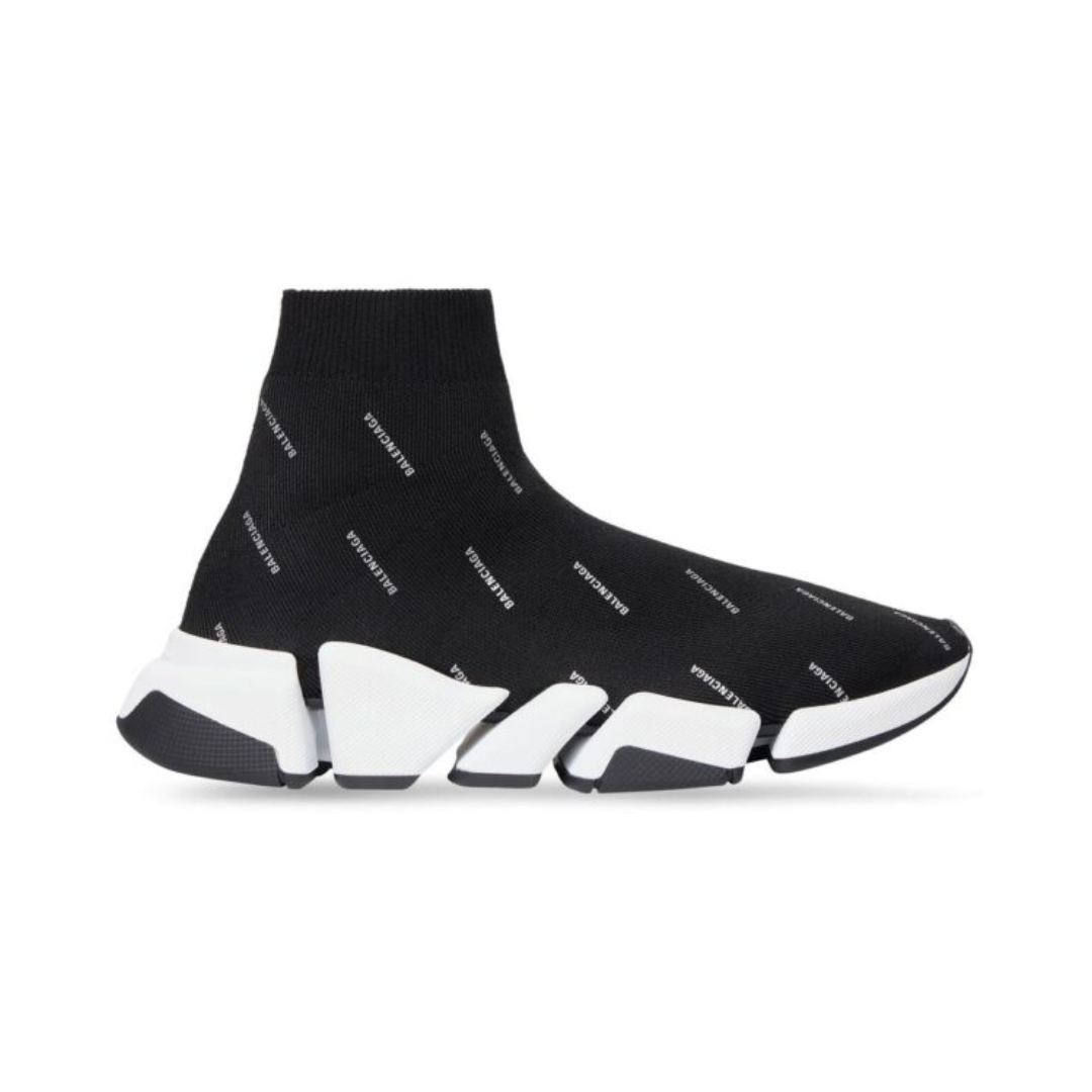 Sneakers Balenciaga Speed 2.0 in maglia nera con logo bianco