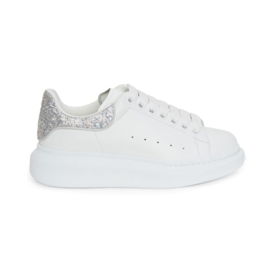 Scarpe Alexander McQueen Oversize in pelle bianca con tallone argento