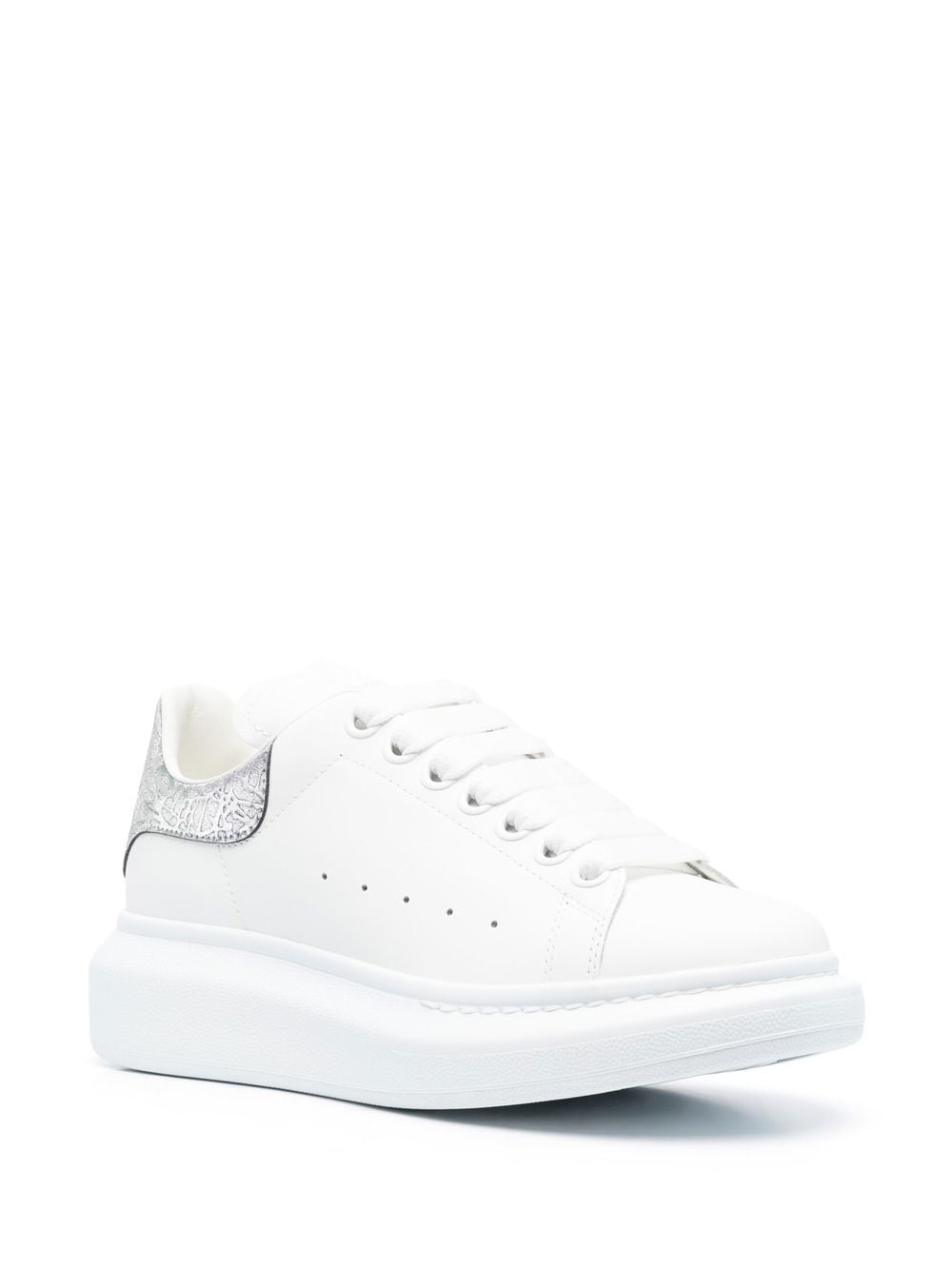 Scarpe Alexander McQueen Oversize in pelle bianca con tallone argento