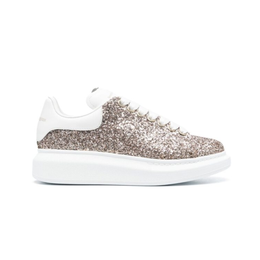 Scarpe Alexander McQueen Oversize bianche con glitter bronzo