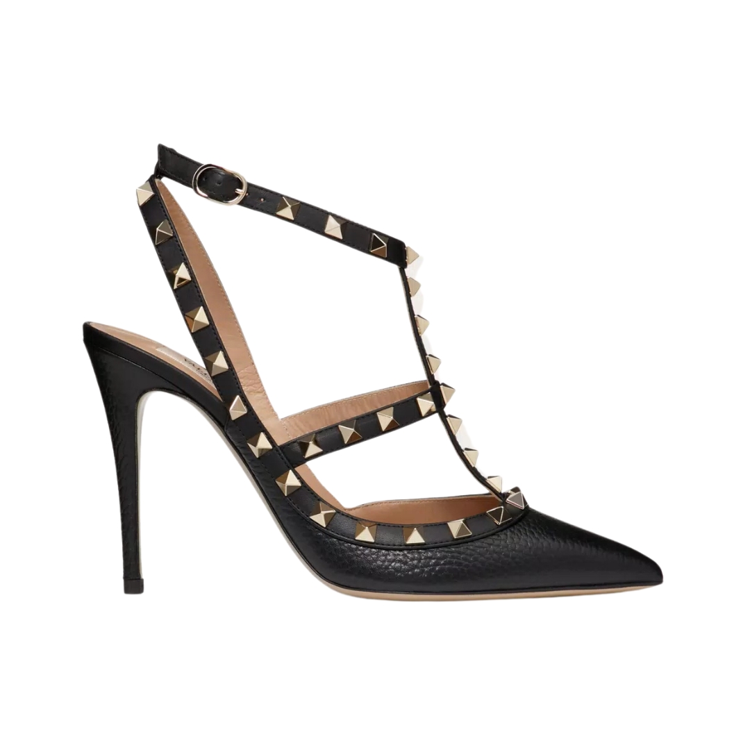Décolleté Valentino Rockstud in pelle nera con cinturino sul tallone e tacco 10 cm