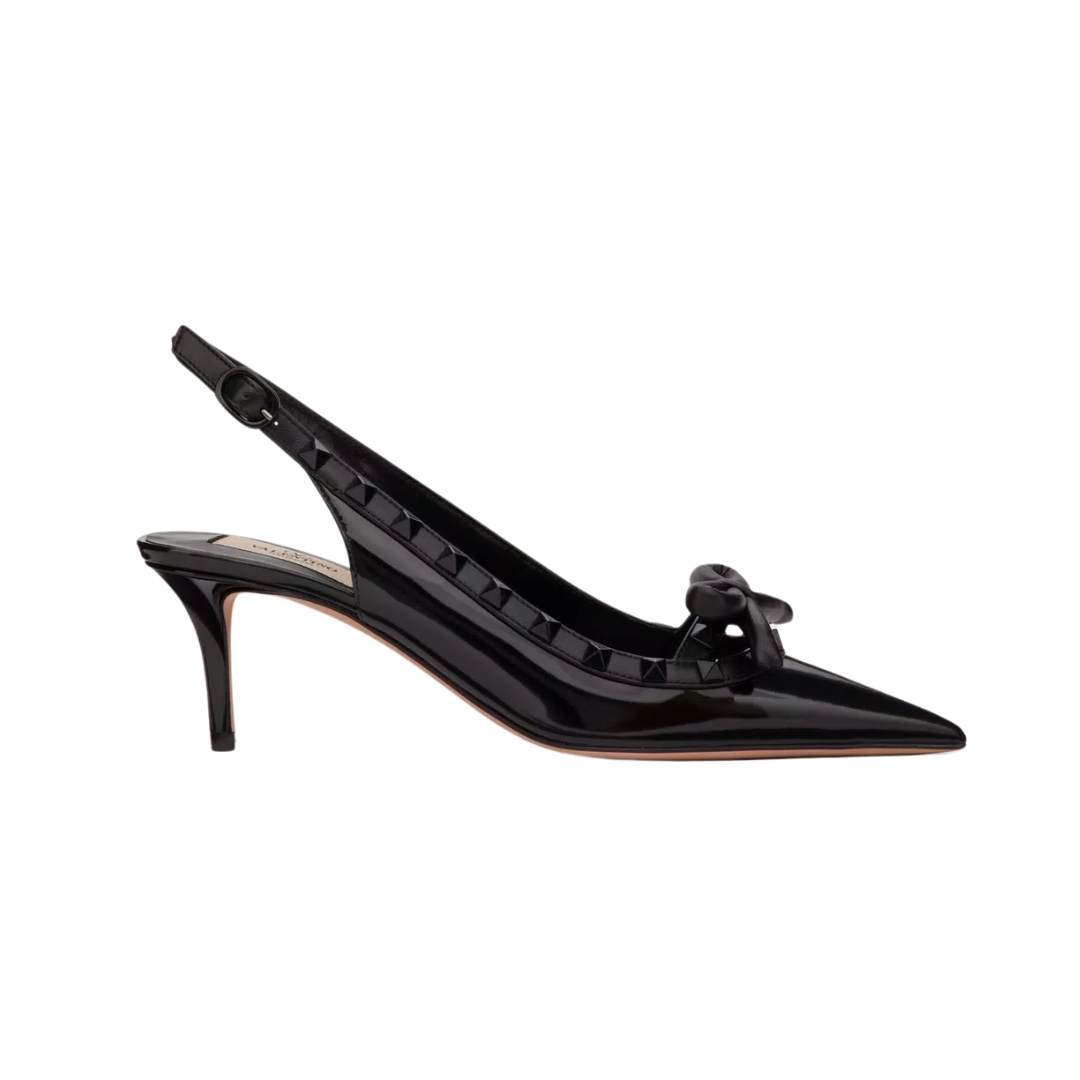 Décolleté slingback Valentino Rockstud in pelle nera con fiocco tacco 6 cm