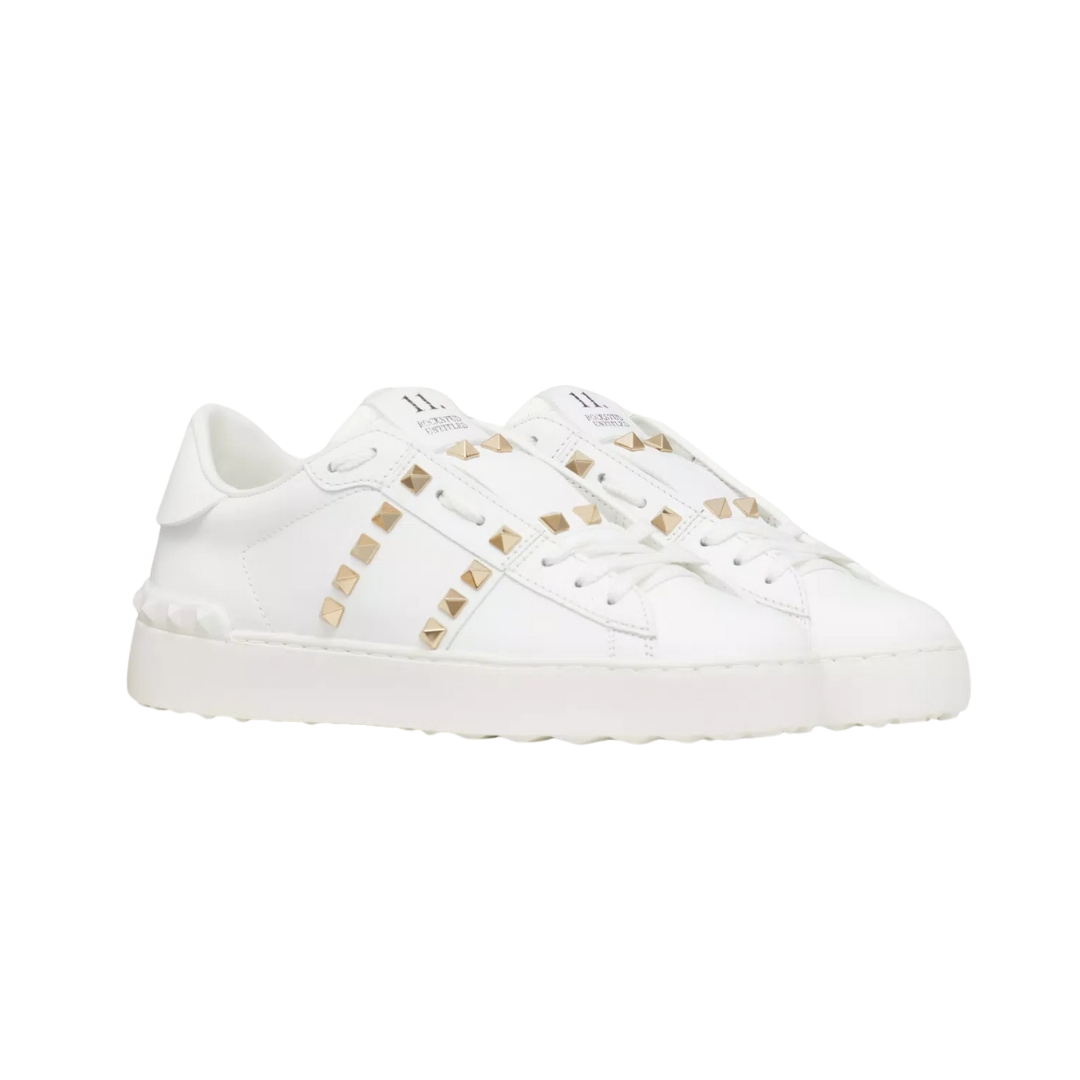 Sneakers Valentino in pelle bianca con fascia nera e borchie ton sur ton