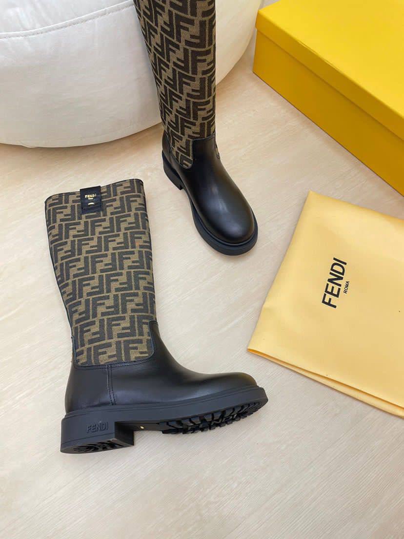 Stivali Fendi Filo al ginocchio in pelle e maglia FF