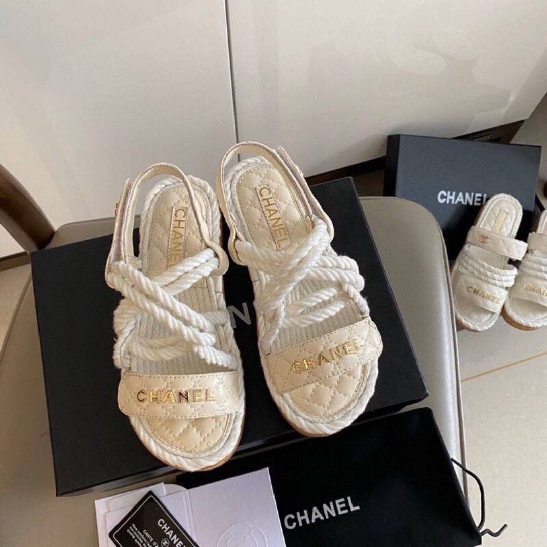 Dettagli:● Materiale: corda e cotone● Colore: bianco● Chiusura: lacci annodabili● Logo: Chanel ricamato sulle fasce● Suola: in gomma● Interno: tessuto