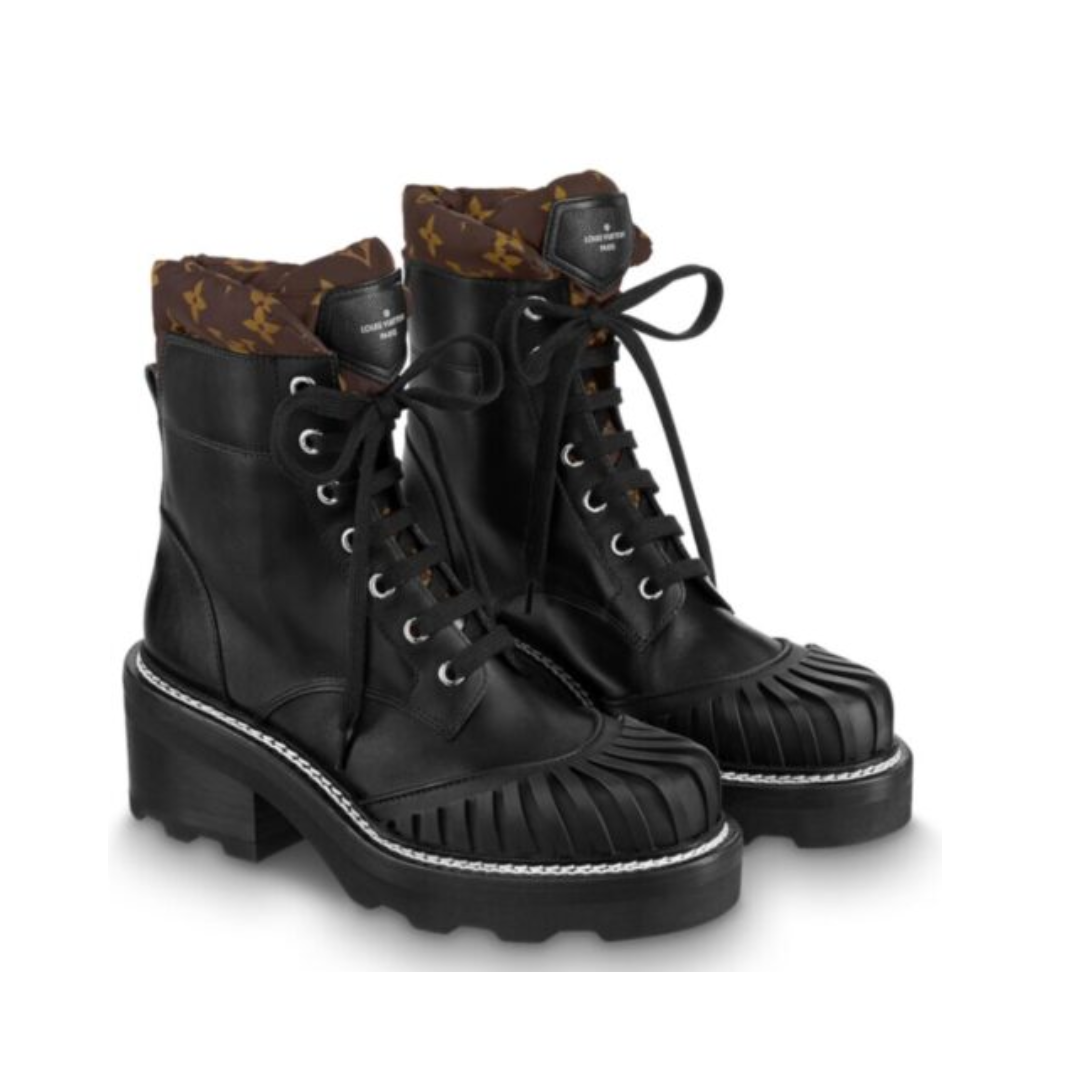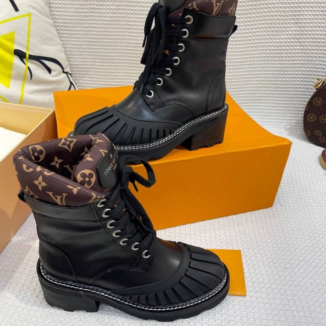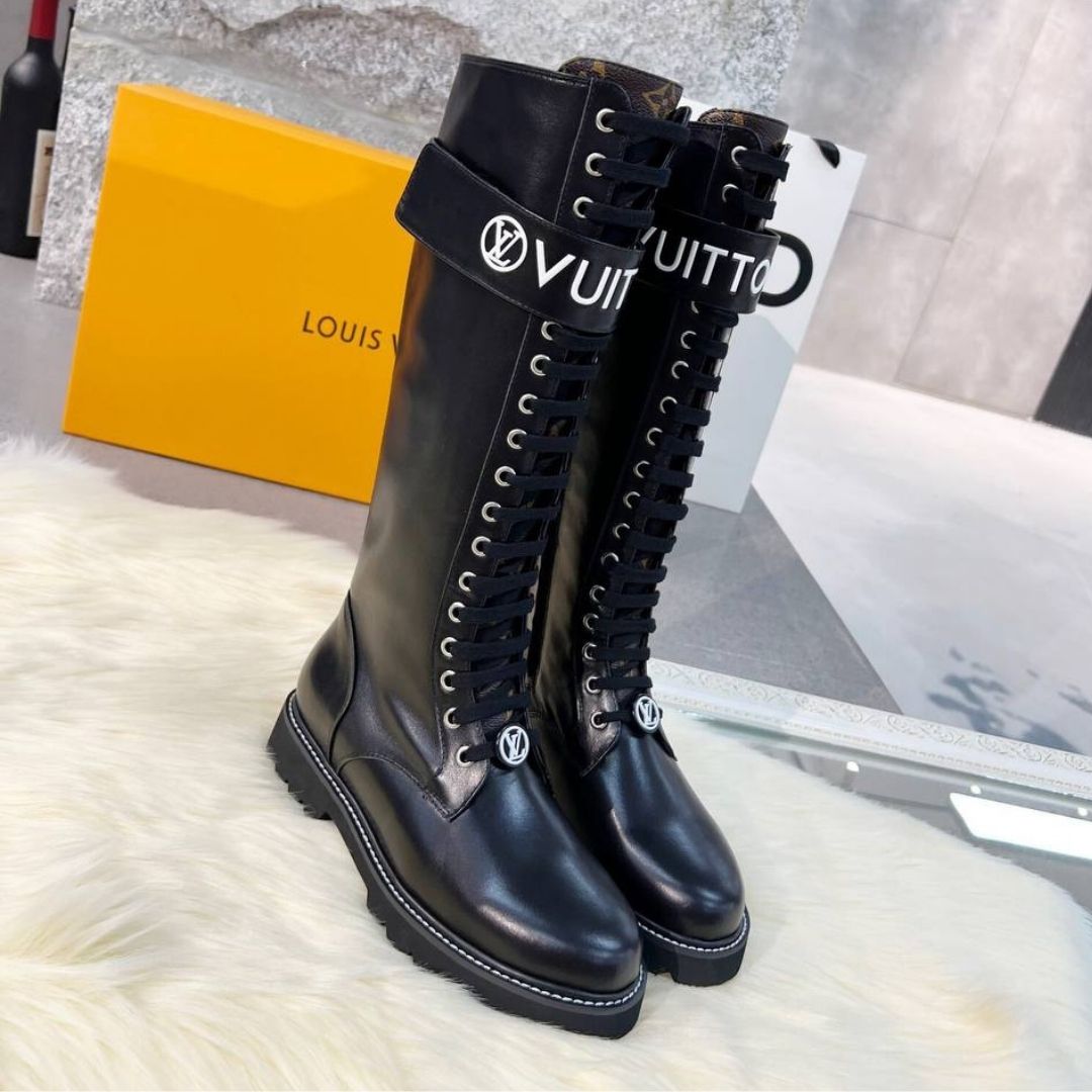 Dettagli:● Materiale: Pelle di vitello● Colore: Nero● Chiusura: Lacci frontali + zip interna● Logo: “VUITTON” in rilievo sul gambale● Suola: