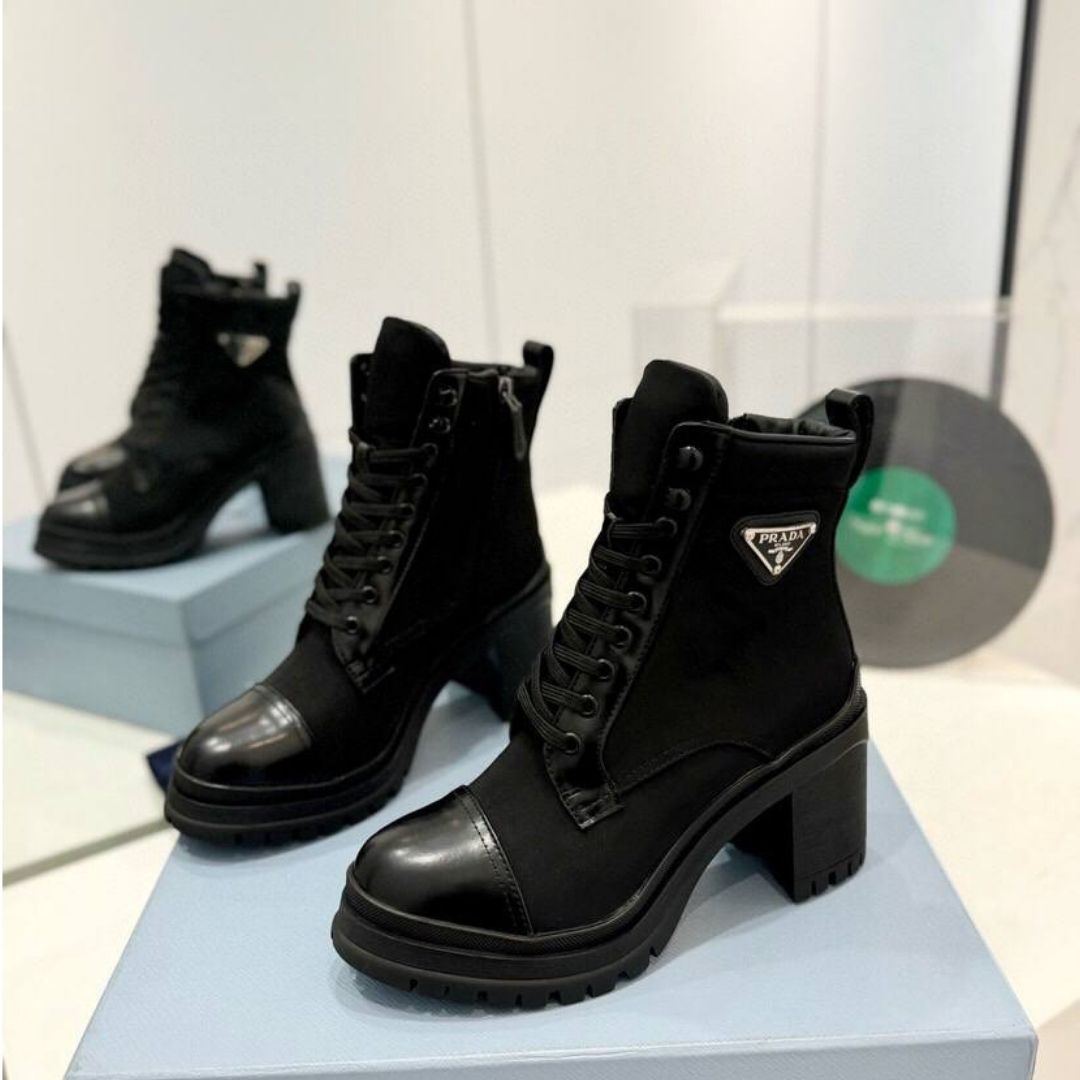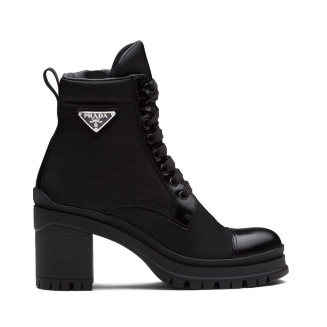 Stivaletti Prada in nylon nero con tacco 5,5 cm