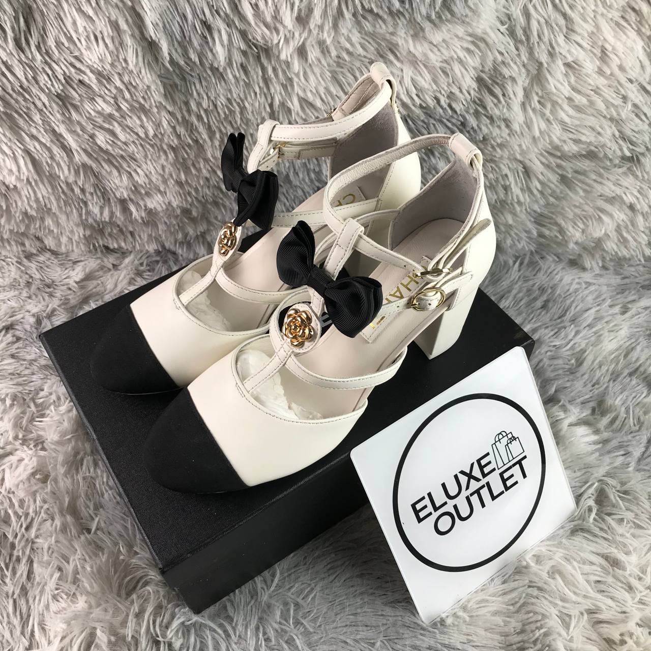 Dettagli:● Materiale: Pelle verniciata● Colore: Bianco con punta nera● Chiusura: Cinturini multipli con bottoni dorati● Logo: Logo CC inciso su