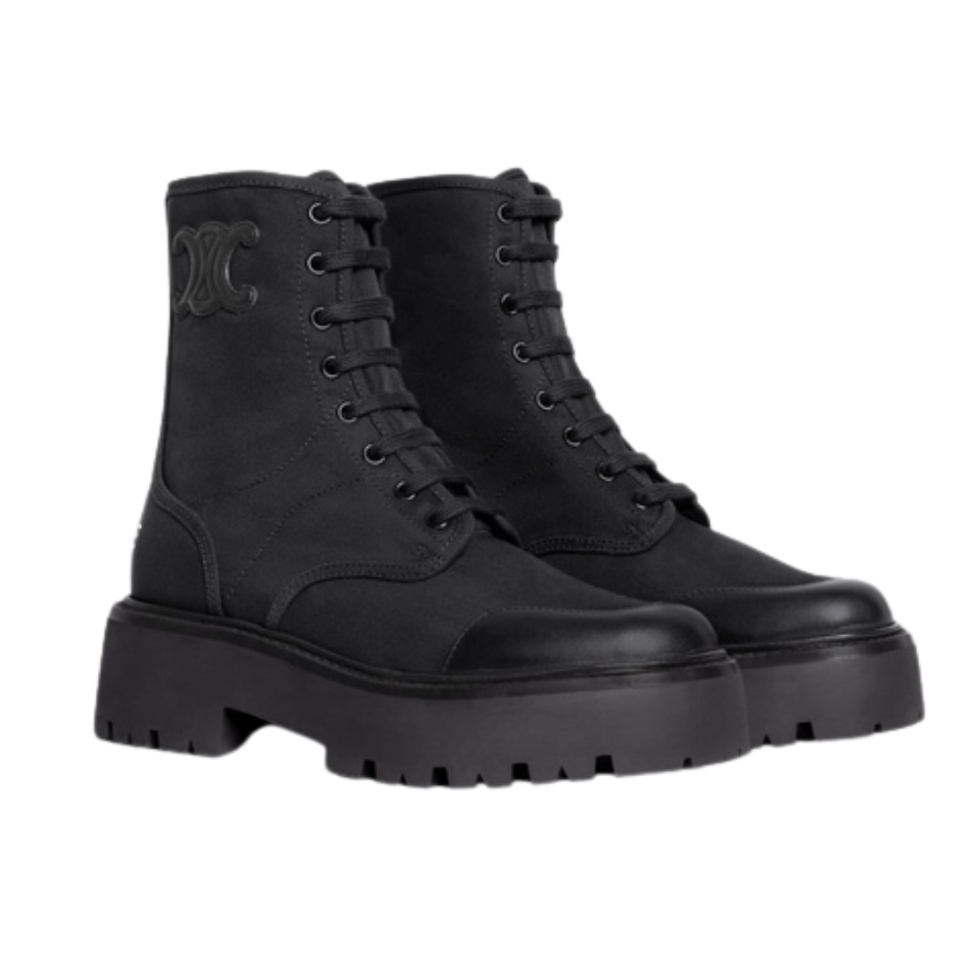 Stivaletti Celine Bulky in nylon e pelle di toro nera