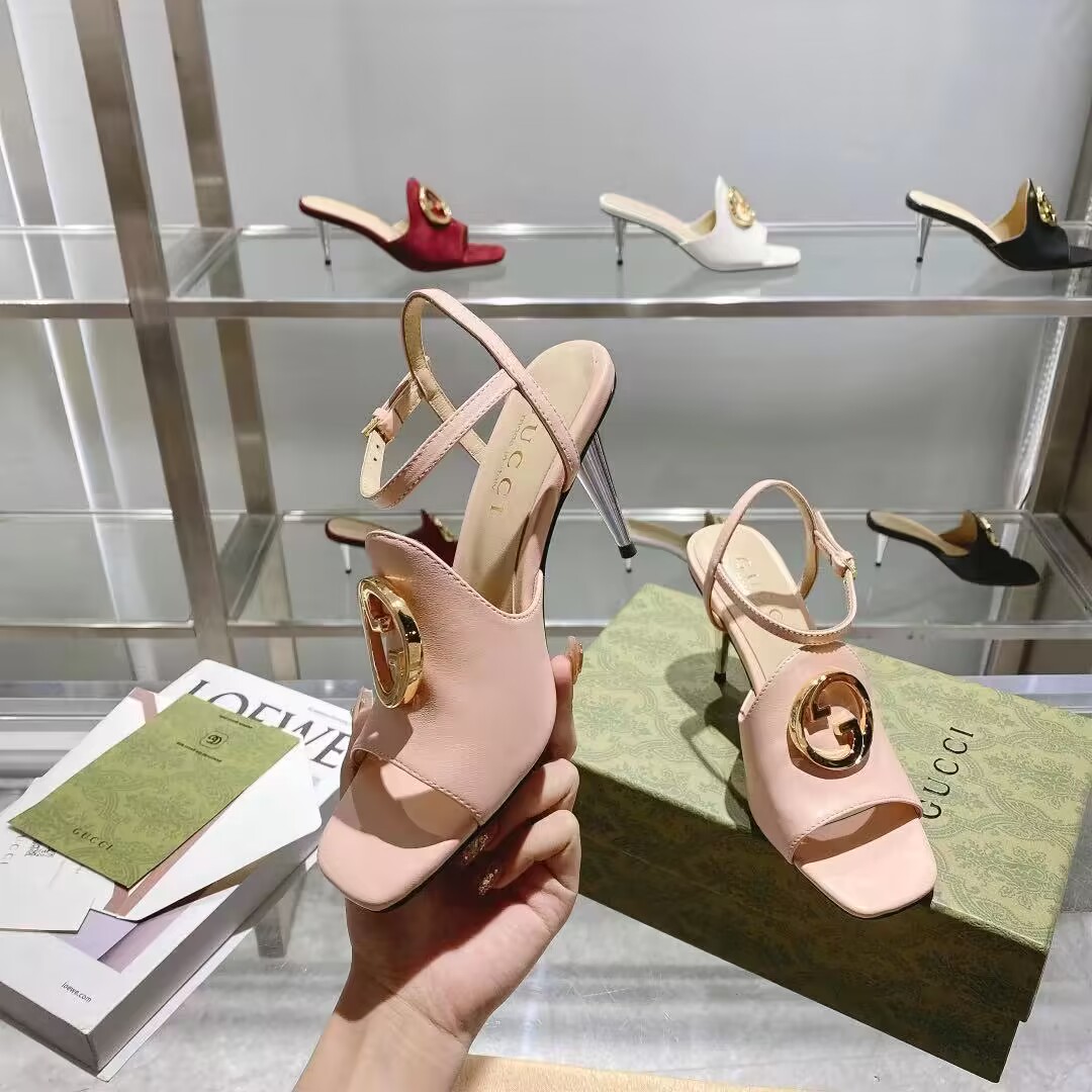 Sandali Gucci GG con tacco in pelle rosa cipria 8,5 cm