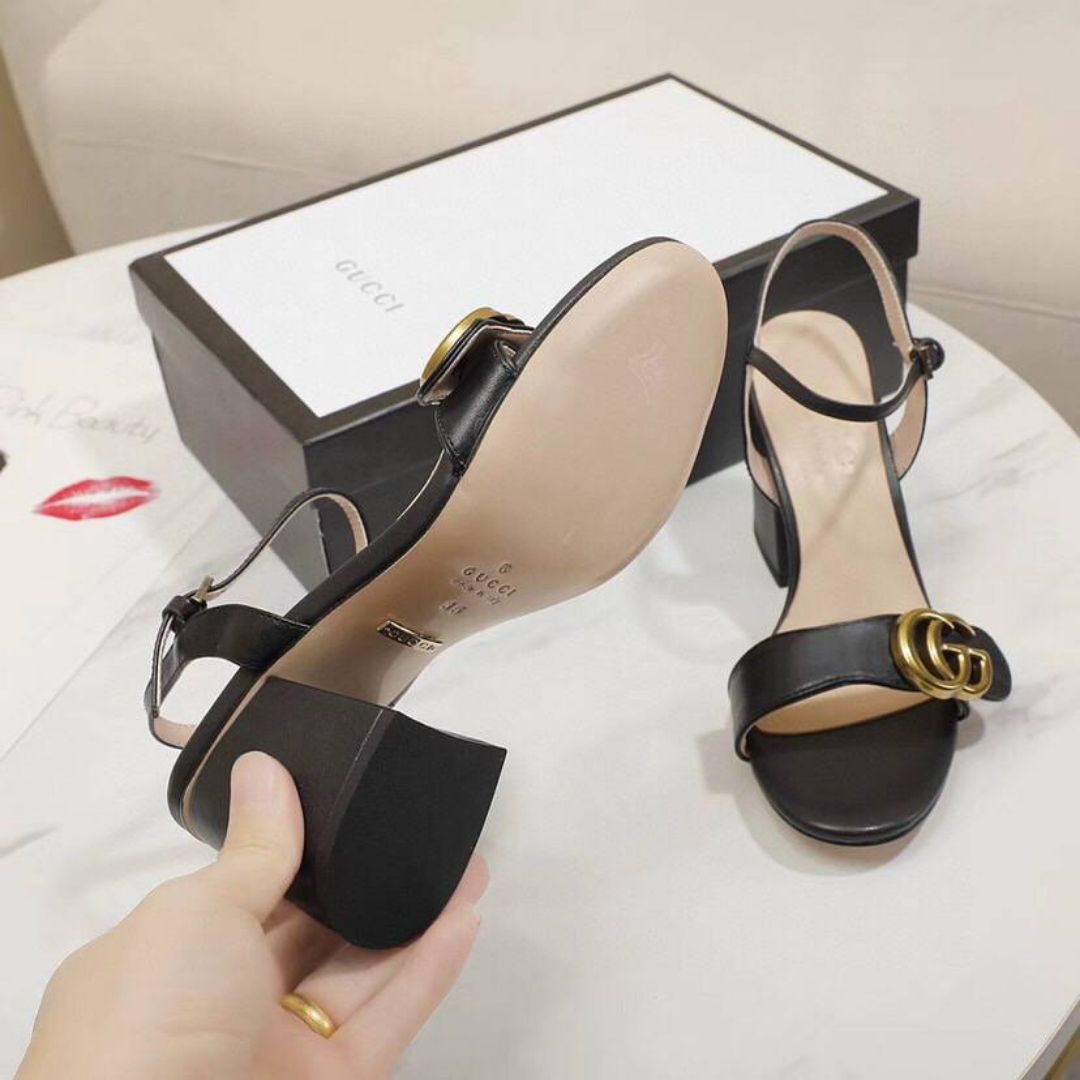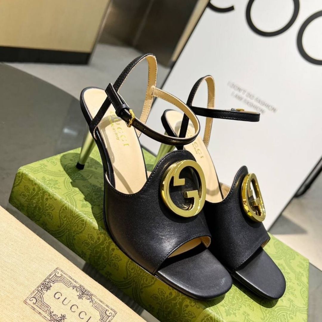 Dettagli:● Materiale: Pelle liscia● Colore: Nero● Chiusura: Cinturino alla caviglia con fibbia● Logo: Doppia G dorata sulla parte frontale● Suola: