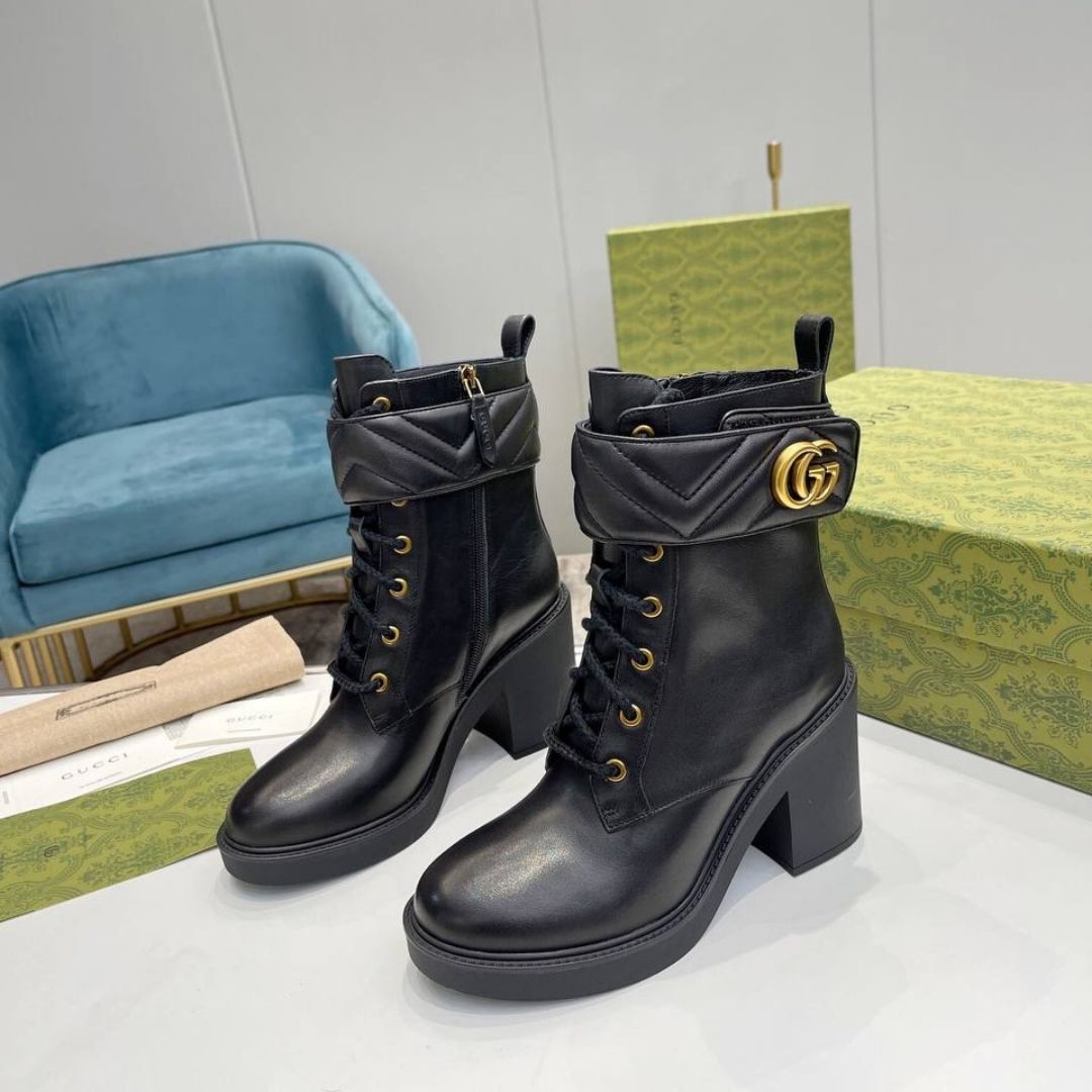Dettagli:● Materiale: Pelle di vitello● Colore: Nero● Chiusura: Lacci frontali● Logo: Logo GG dorato sulla linguetta laterale● Suola: In gomma